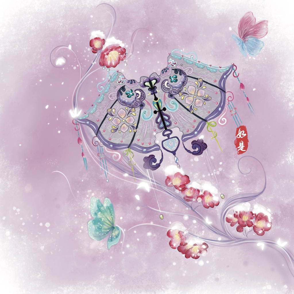 中国传统元素云肩似垂云四落,青缘相绕,黄罗焕彩,金芒嵌缀。以蝶为纹,翅展间暮山紫韵流淌,如意吉祥之兆与梦幻诗意相融。且纳十二花神之梅韵,寒香幽逸,于罗绮之上,绣出古风新境,似岁月幽梦,轻落于肩。