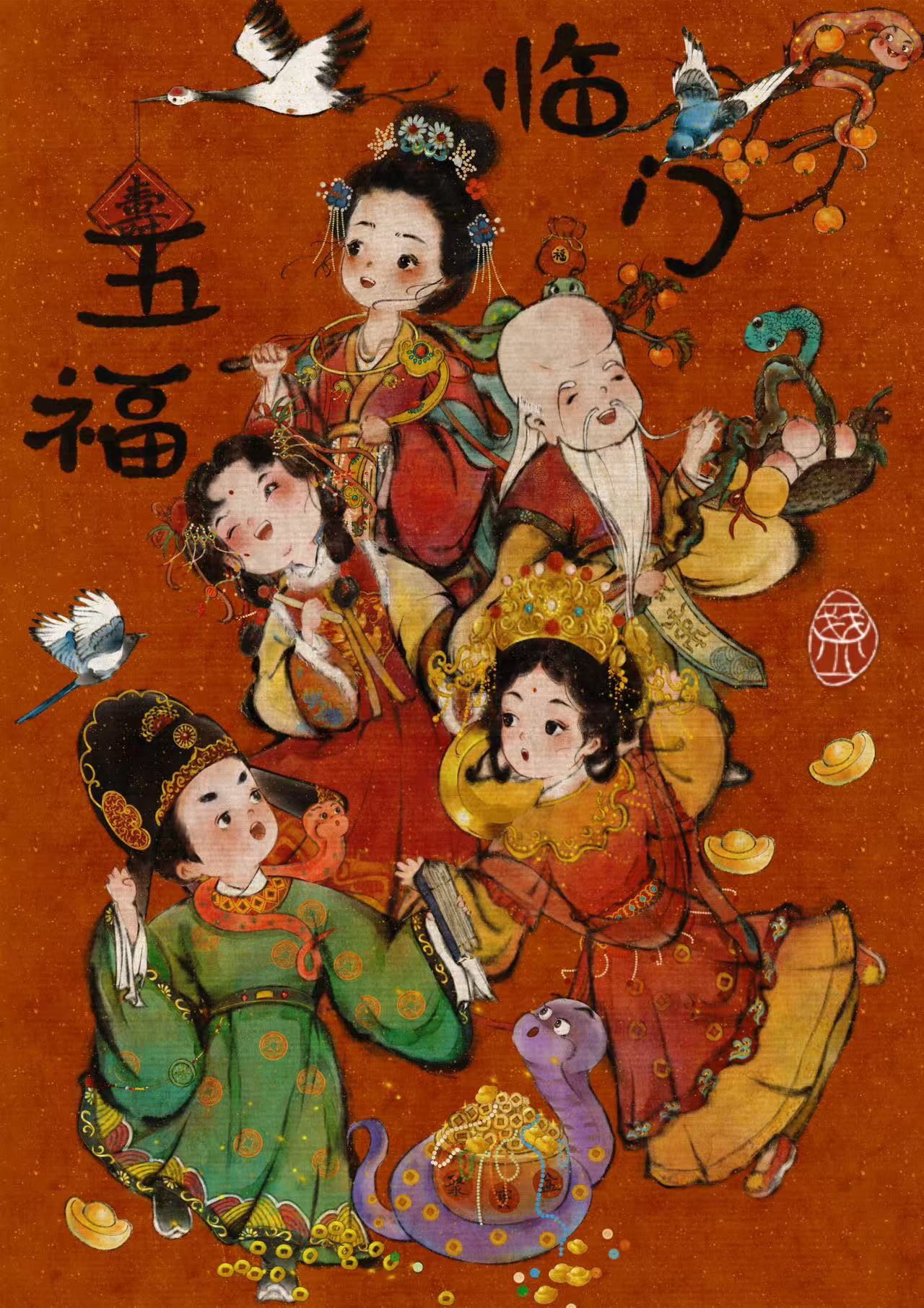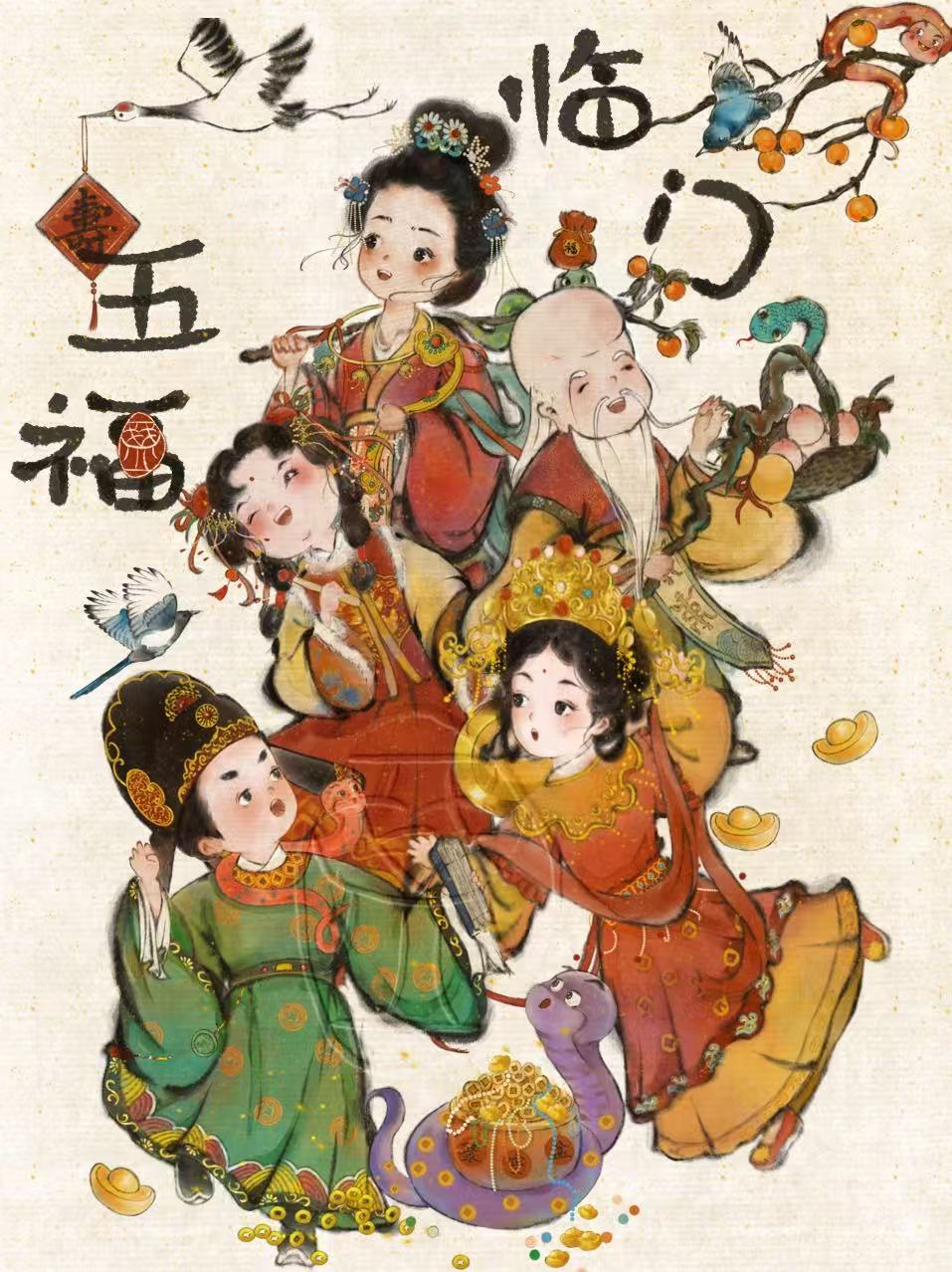 五福临门系列,这一创意满满的文化产品,将古老智慧与现代审美巧妙融合,为传统文化赋予了新的生命与活力。该系列以“福禄寿喜财”这五大吉祥元素为核心,分别代表着幸福、高官厚禄、长寿、喜庆与财富,自古以来便是中国人最为向往和追求的美好愿景。 在这一系列中,五路神仙的形象被赋予了更加接地气、贴近现代生活的气息。他们不再仅仅是高高在上、遥不可及的神祇,而是以一种更加亲切、可爱的姿态出现在我们眼前。这样的设计不仅保留了传统文化的精髓,更让古老的神话故事以一种全新的方式走进千家万户,成为现代人日常生活中的一部分。 五福临门系列的产品种类繁多,涵盖了冰箱贴、钥匙扣、拼图、手机壳以及各类包装等文创领域。这些小巧精致的产品不仅具有实用性,更蕴含着深厚的文化内涵和美好的祝福。无论是将其作为自己日常使用的小物件,还是作为礼物赠送给亲朋好友,都能传递出满满的心意和祝福。 在这个快节奏的时代,五福临门系列以其独特的文化魅力和创意设计,成为了连接过去与现在、传统与现代的桥梁。它让我们在忙碌的生活中,依然能够感受到那份来自传统文化的温暖与力量,也让传统文化以一种更加时尚、潮流的方式得以传承和发扬。