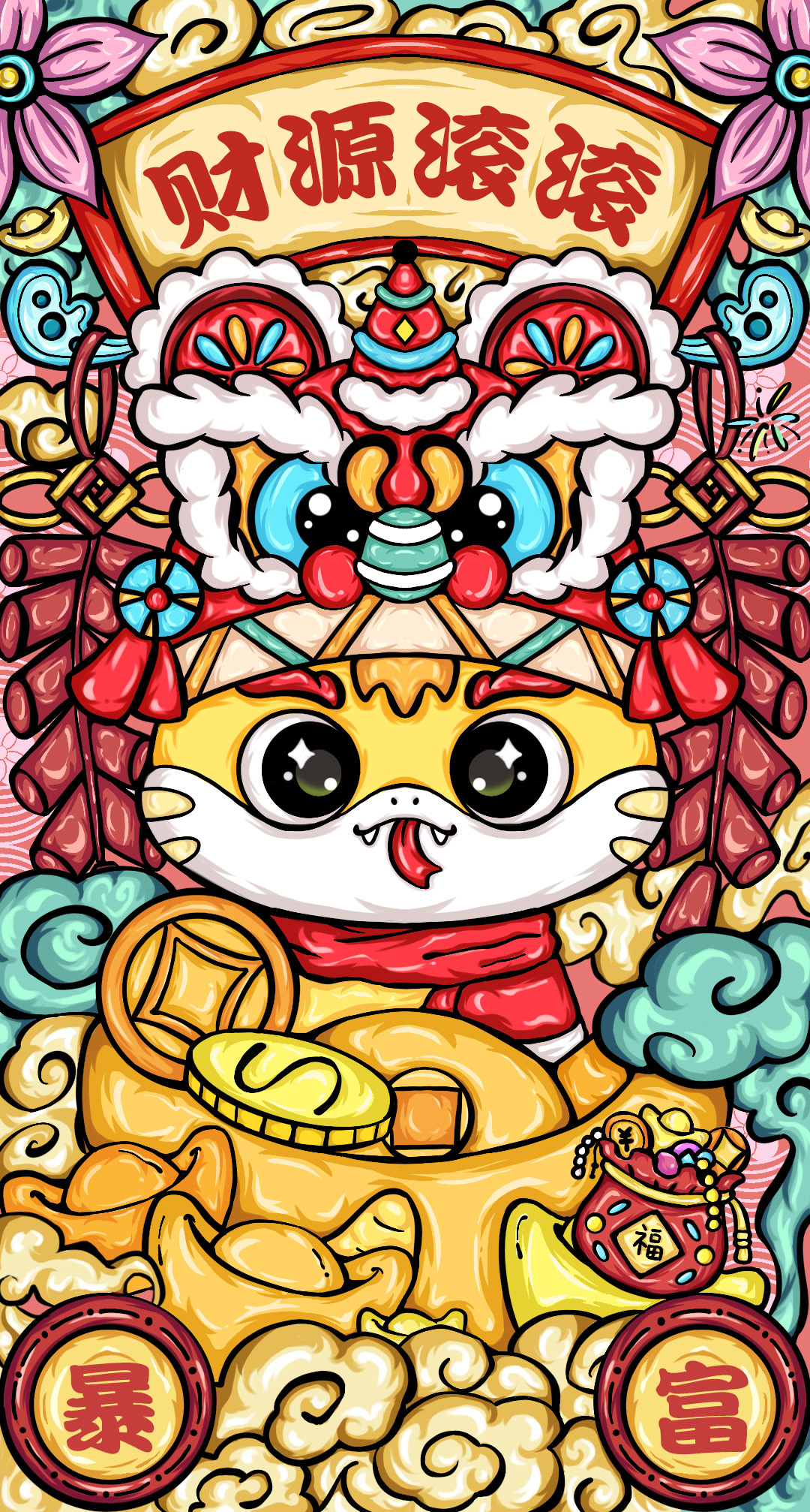 2025蛇年国潮插画|财源滚滚