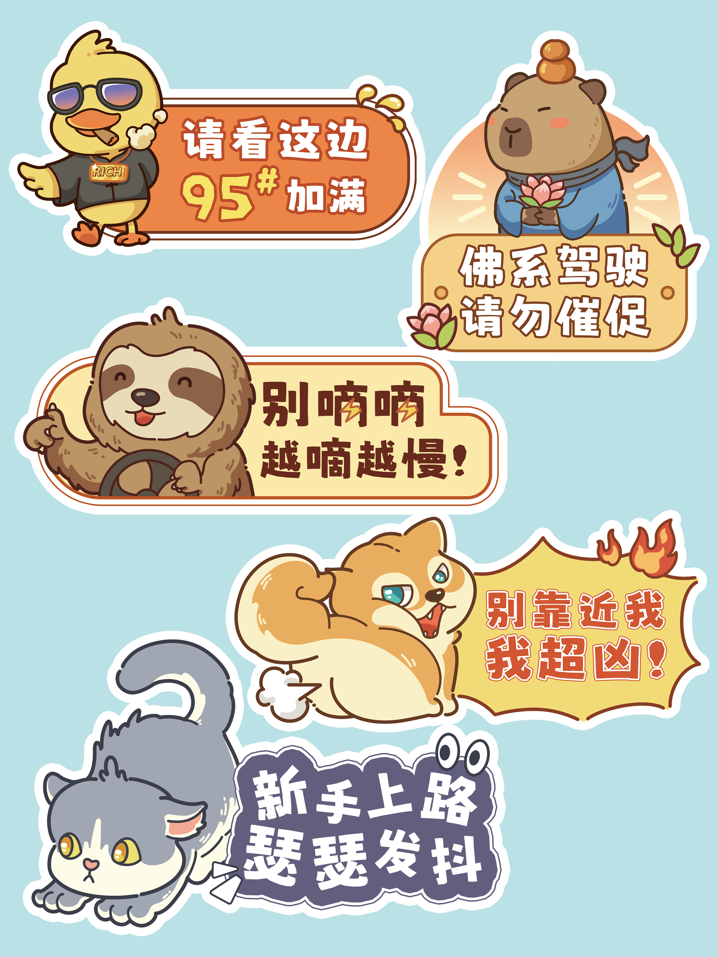 四款卡通动物插画车贴设计,结合四种动物的特点进行设计,配上趣味文字,好看时尚又有趣味性!
