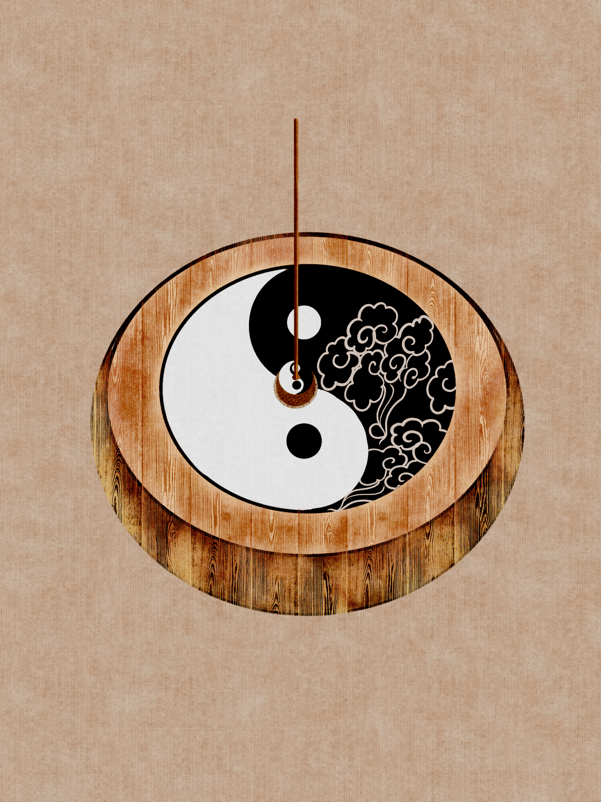 香炉,总体的结构为木制,扁圆形香炉,香炉上刻画着阴阳两极图,在黑色的那边设计了祥云,寓意祝福与美好的愿望,表达了吉祥,喜庆,在阴阳两极图的中间有一个小圆球,这个上面可以插香,这是第一种使用方法, 第二种就是在香炉里边放置香点燃,可以透过祥云冒出,祥云用掐丝法郎制成,美观实用