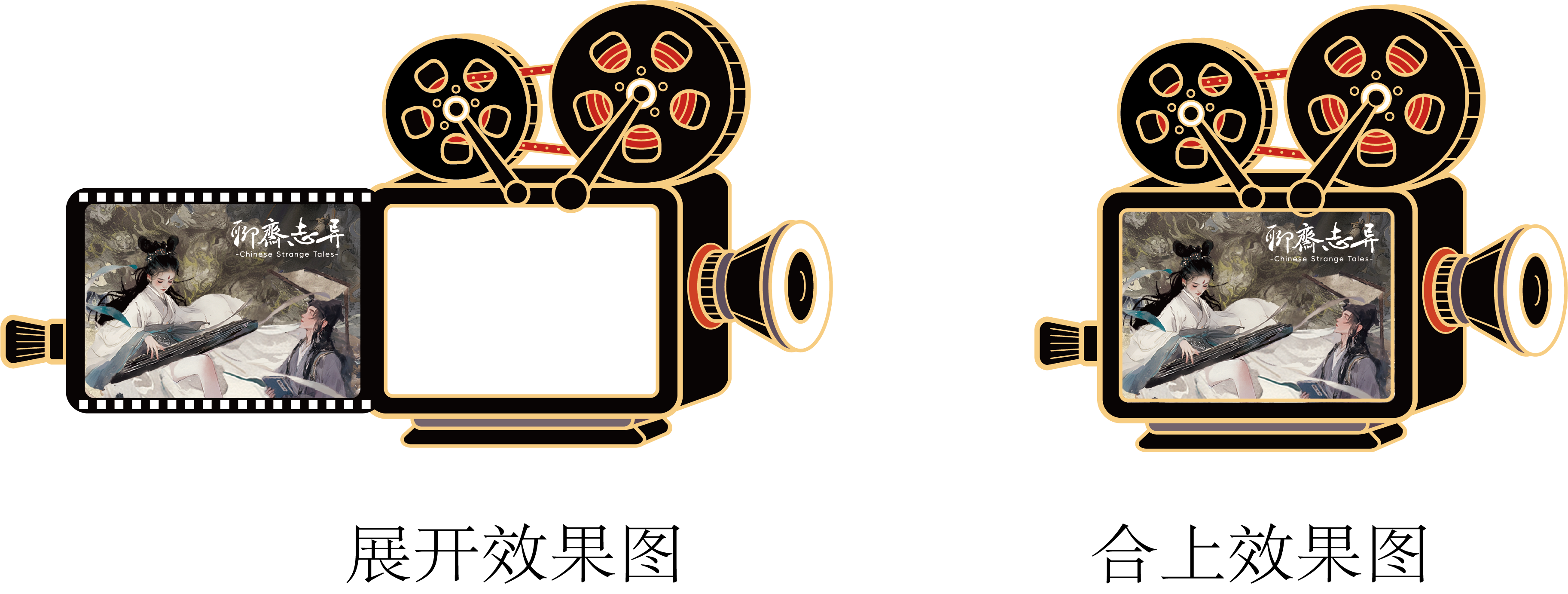 本产品以《聊斋・兰若寺》动画电影中宁采臣与聂小倩人鬼情未了的经典叙事为魂,选取电影放映机的复古形态,打造可交互的文化载体。外框以黄铜质感勾勒放映机轮廓,齿轮纹路隐喻时空流转。抽拉间,镜头画面逐渐显色彰显幽冥意境,映现兰若寺青雾缭绕、鬼影幢幢,呼应人鬼世界的界限消融,亦似胶片放映时的光影叠化,让静态插画成为动态叙事的容器。一枚小物,既藏蒲松龄 “写鬼写妖” 的笔力,亦纳光影艺术的革新巧思,使古典情致与现代生活自然衔接,让观者于方寸之间,抽拉千年情劫,细品刹那永恒。