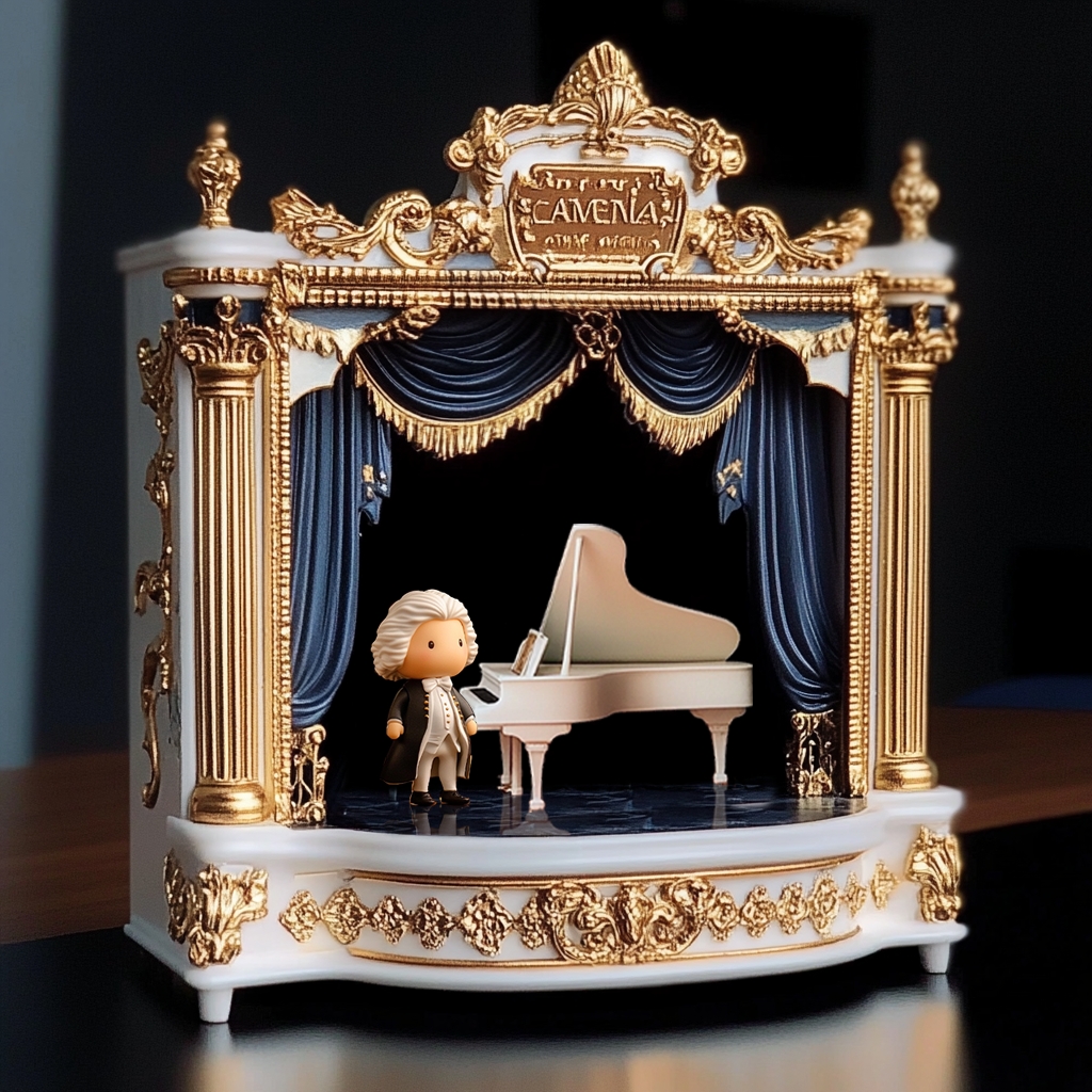 “古典音乐小剧场” 内置旋转装置,音乐触发时音乐家与乐器同步转动。