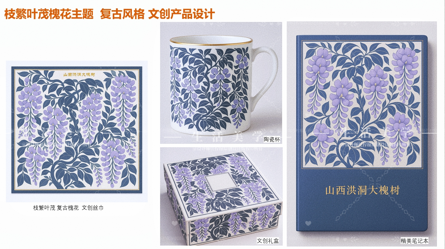 槐荫签语 叶脉相传 一朵槐花, 一条枝脉, 一个姓氏, 一段迁徙的印记。 以洪洞古槐的玲珑槐花和枝叶为形, 镌刻百家姓氏。 书页轻启时, 如见故土槐花枝头摇曳, 姓氏根祖文化如叶脉绵延千年。 设计运用“枝繁叶茂”的槐花花枝主题图案,并结合山西洪洞大槐树的姓氏文化,运用复古一点的怀旧色调,创意设计文创图案插画及书签,丝巾,手提袋代等文创生活美学产品设计。