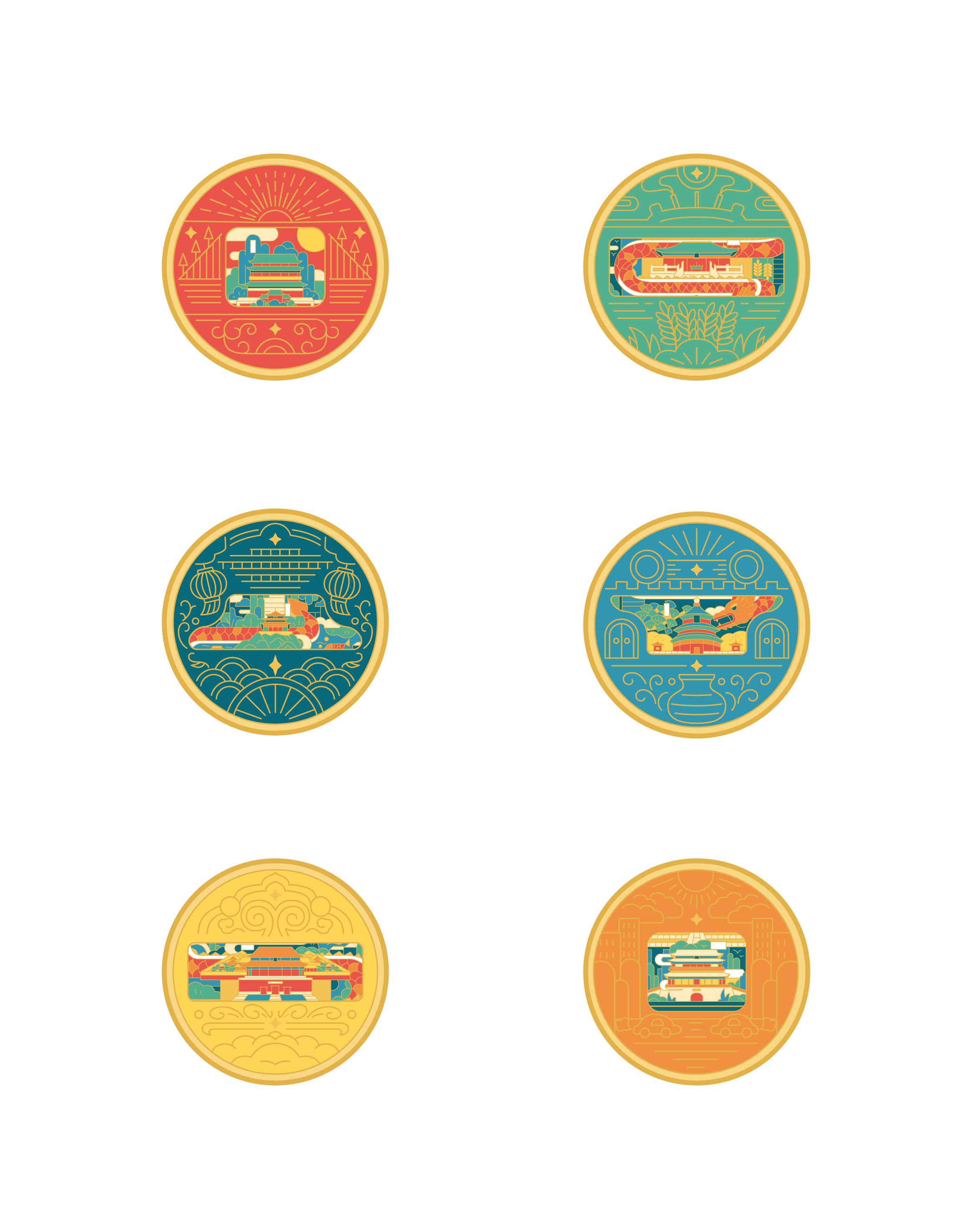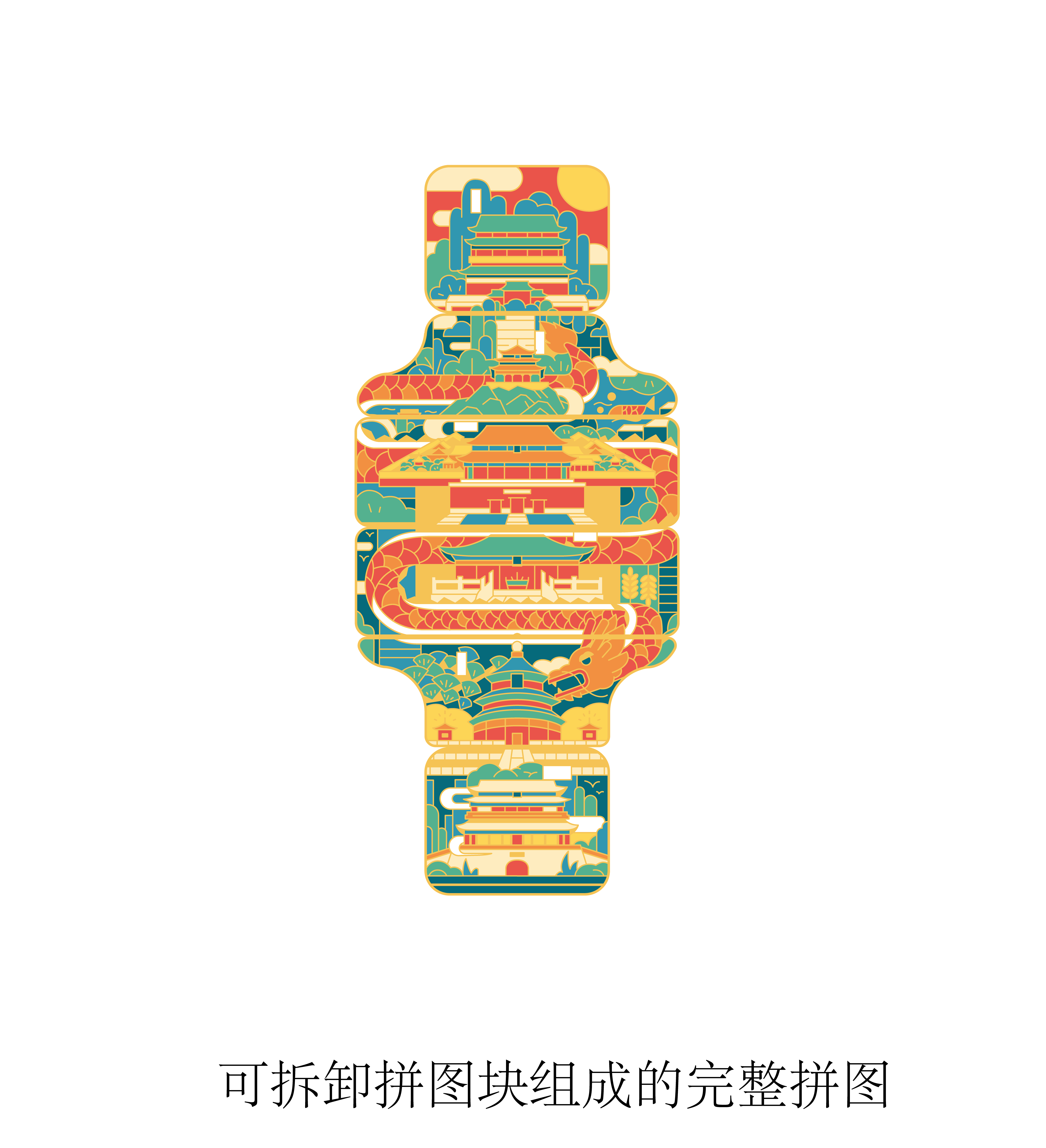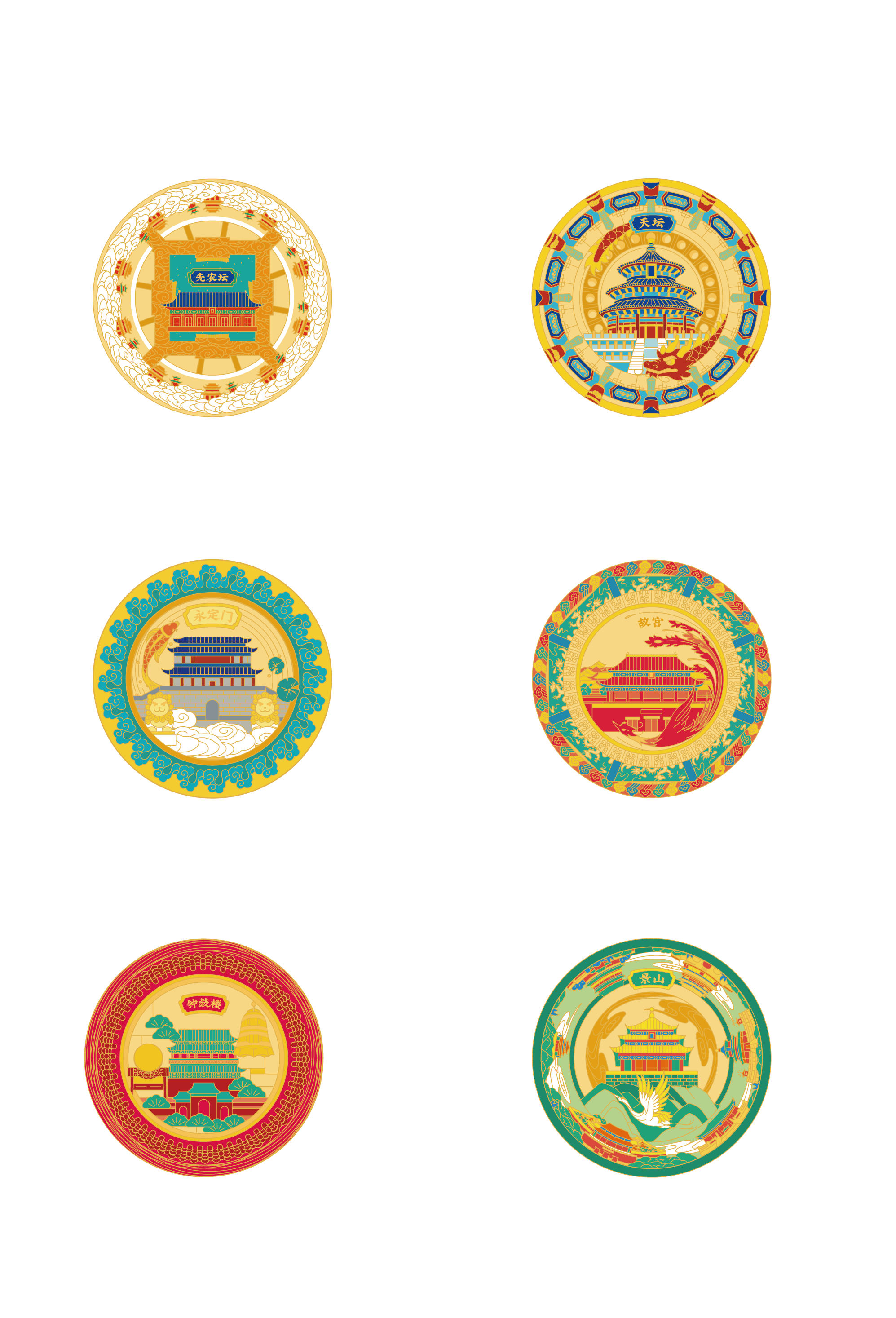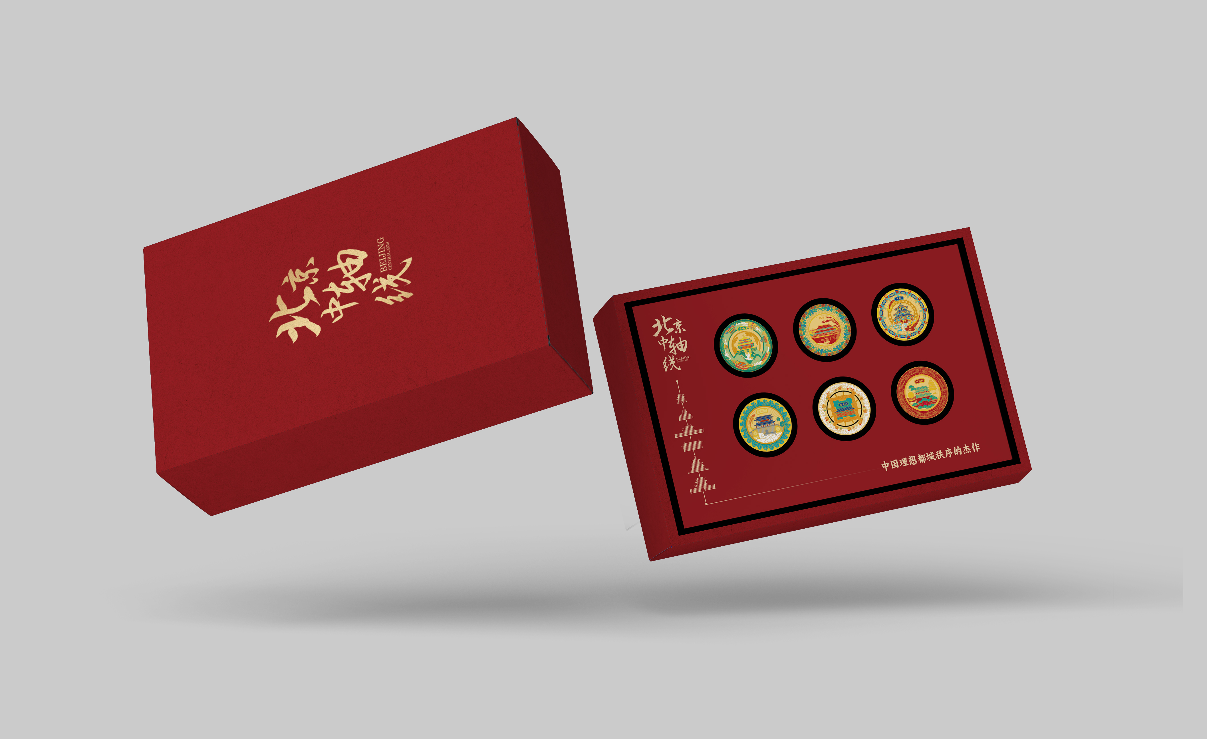 本系列纪念币以北京中轴线为灵感,精选先农坛、天坛、永定门、故宫、钟鼓楼、景山六大标志性建筑。正面采用浮雕工艺立体呈现建筑风貌,细节刻画入微,展现中轴线建筑的庄严与美学;背面嵌入可拆卸磁吸拼图,单枚为局部建筑图景,六枚拼合后呈现完整中轴线全景插画。拼图兼具纪念币配件与冰箱贴功能,实现历史传承与实用设计的巧妙融合。