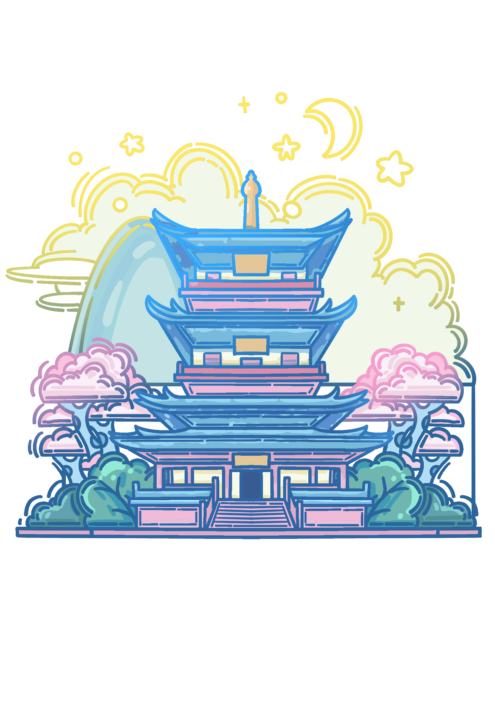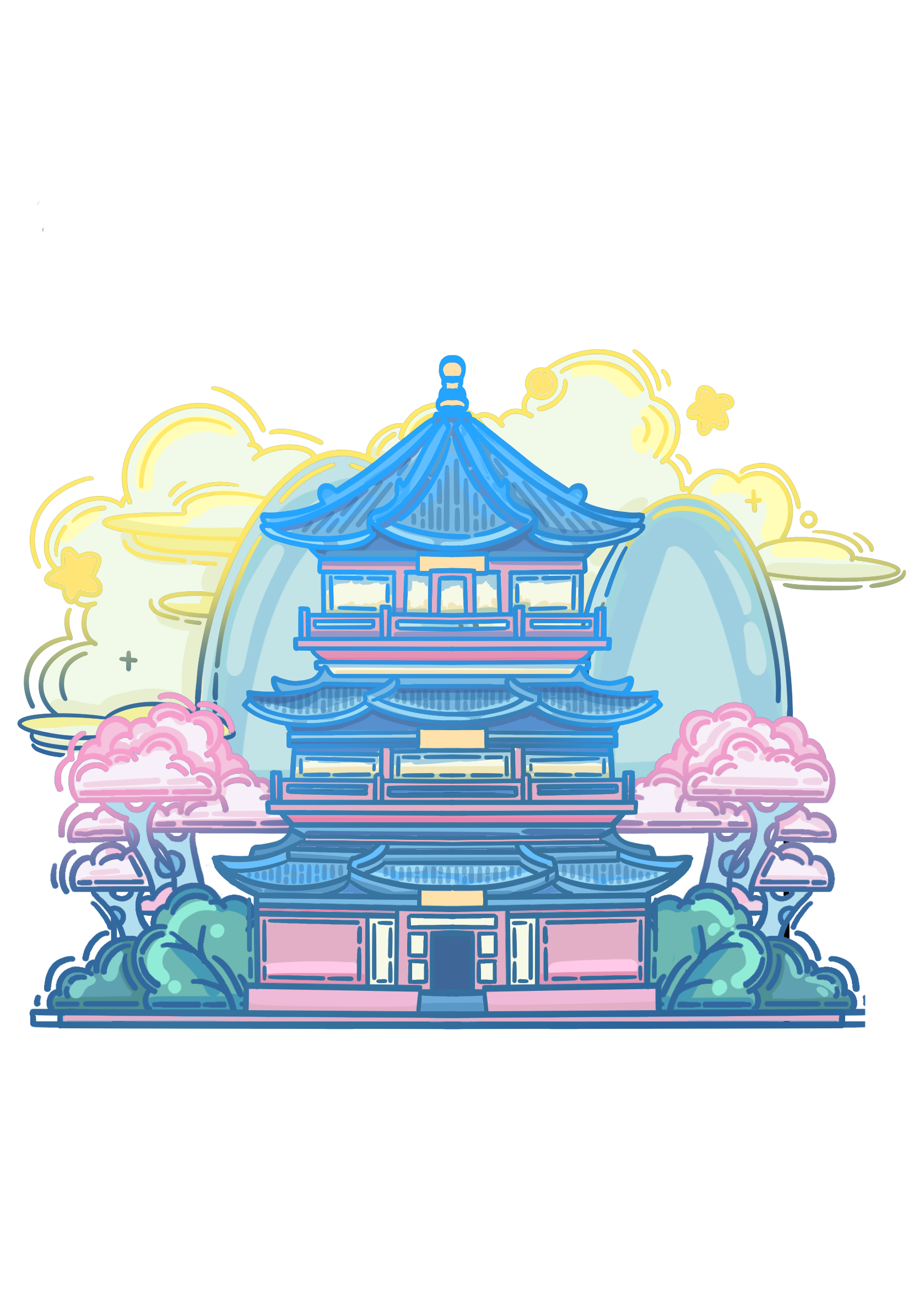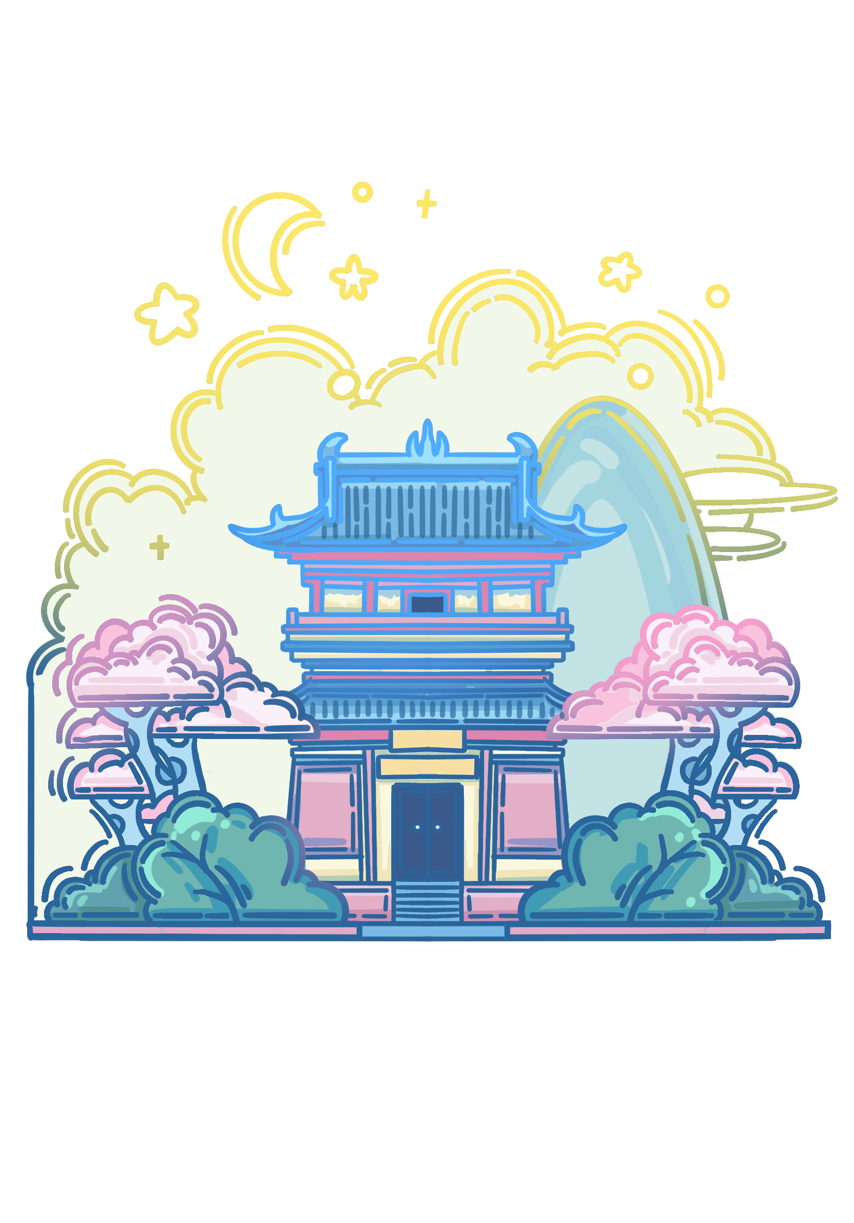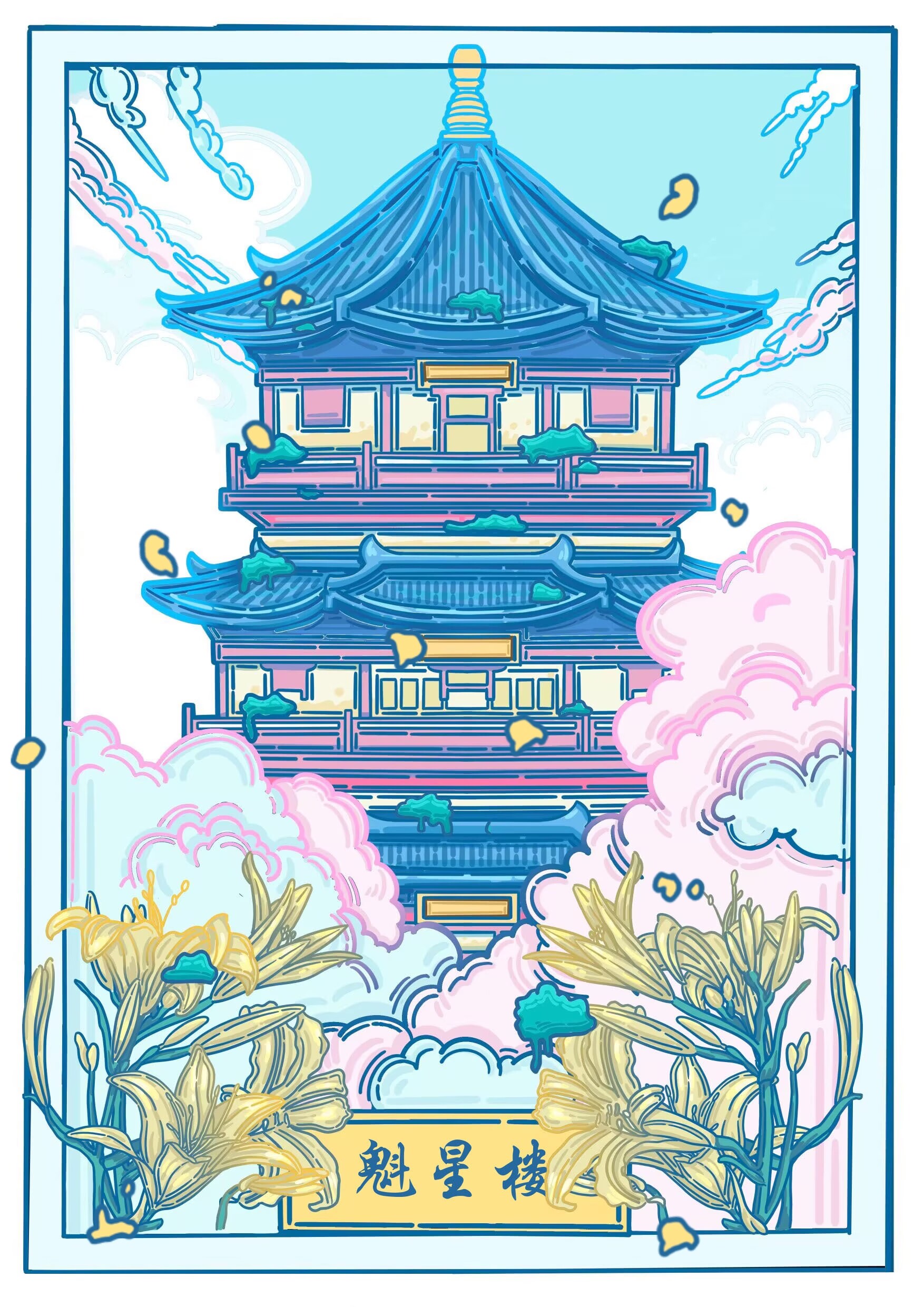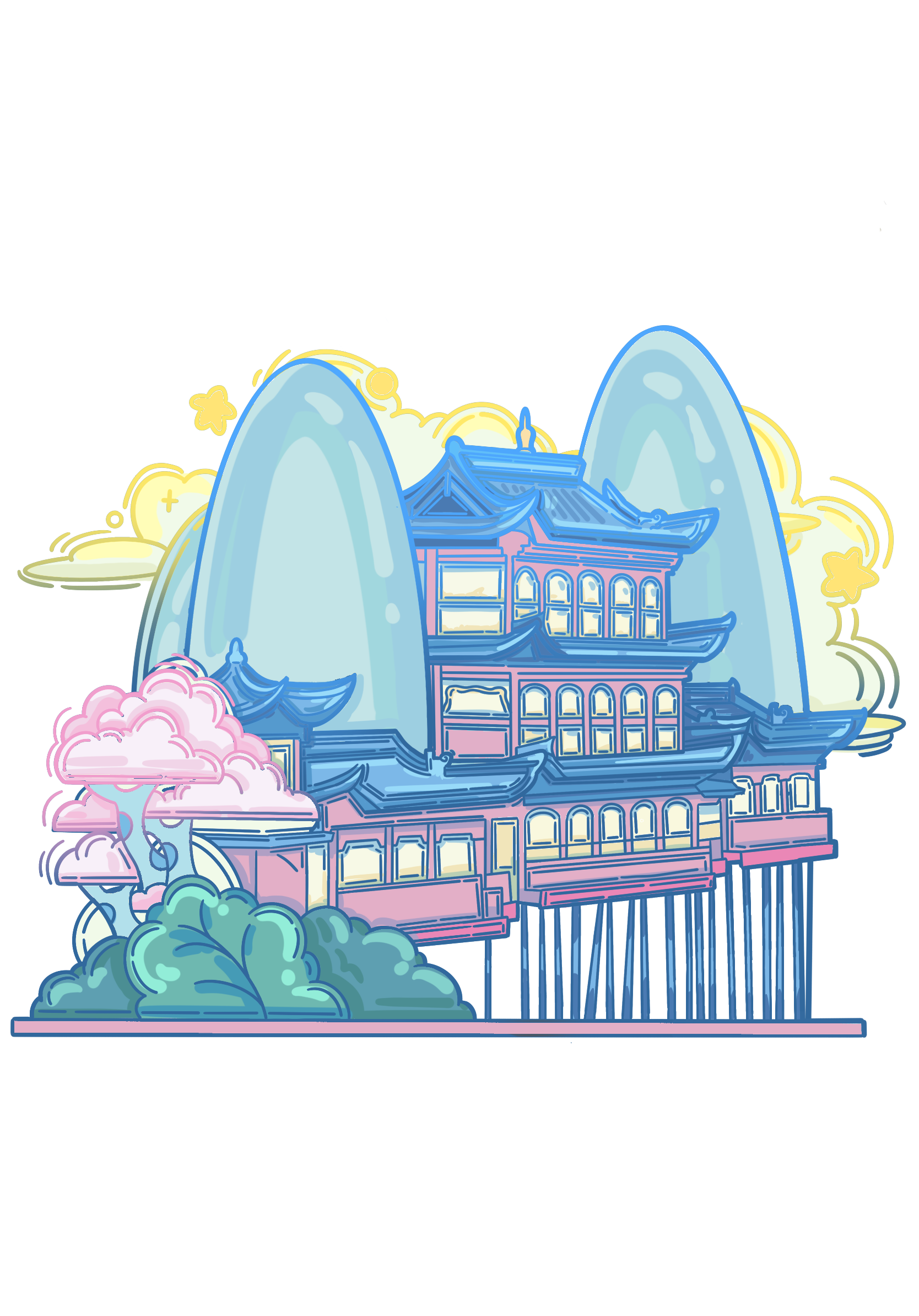 此系列插画以大同中标志性的四个古建筑为主,加以佛像,鸥吻,黄花等元素为辅,运用扁平风格,将古建筑从严肃庄重的氛围变得风趣灵动。色彩以蓝粉为主,明亮的色彩与古建筑本身形成反差,使建筑经历千年依旧看着蓬勃朝气,并符合主题,赋予大同古建筑一个春天。