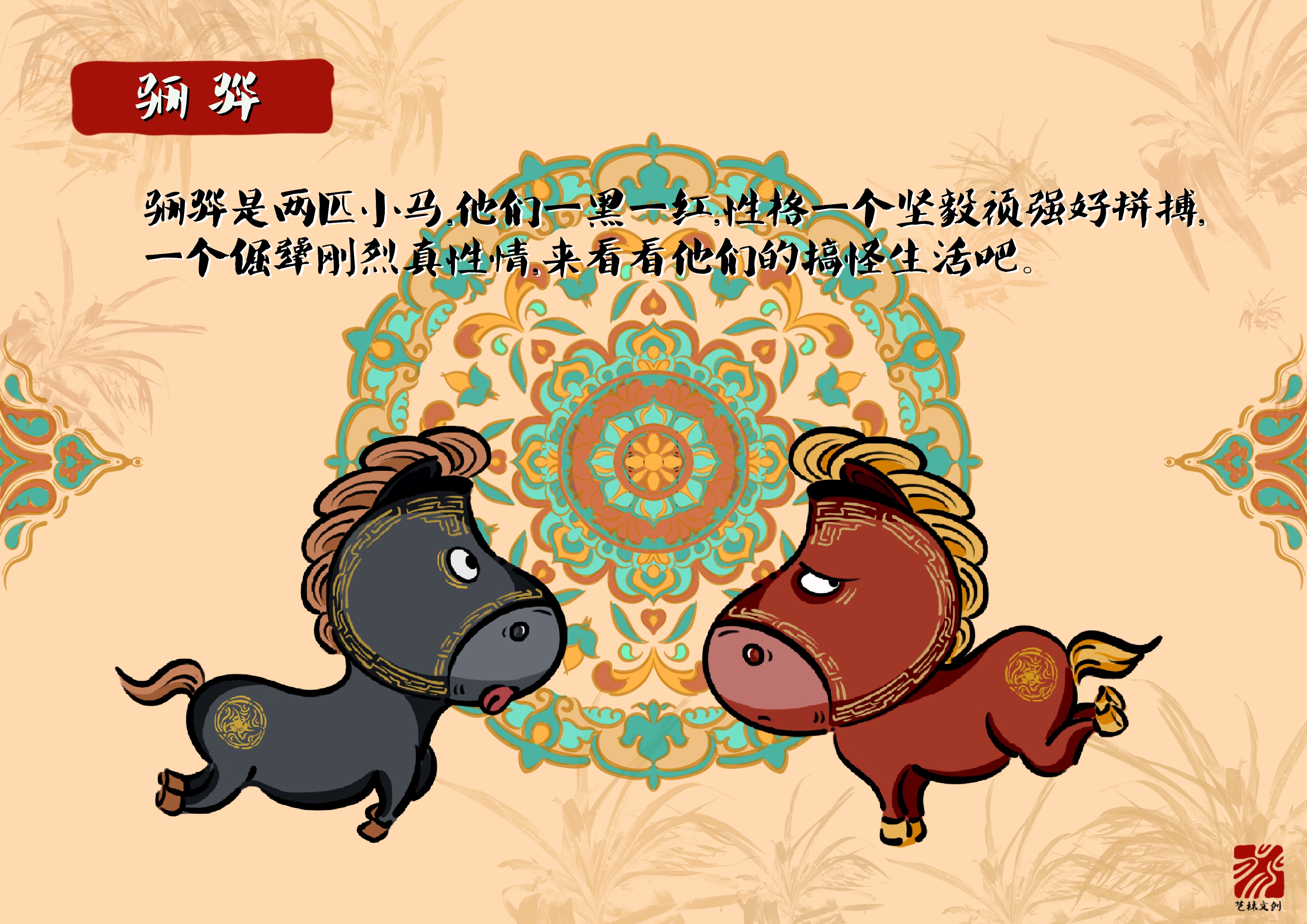 “骊骅”是两匹性格迥异的小马搭档!骊是沉稳执着的黑马,骅是活泼傲娇的枣红马~它们一个像冰一个像火,却成了最好的伙伴, 形象用简约线条+软萌表情包画风,把它们的日常表现的搞笑又治愈!