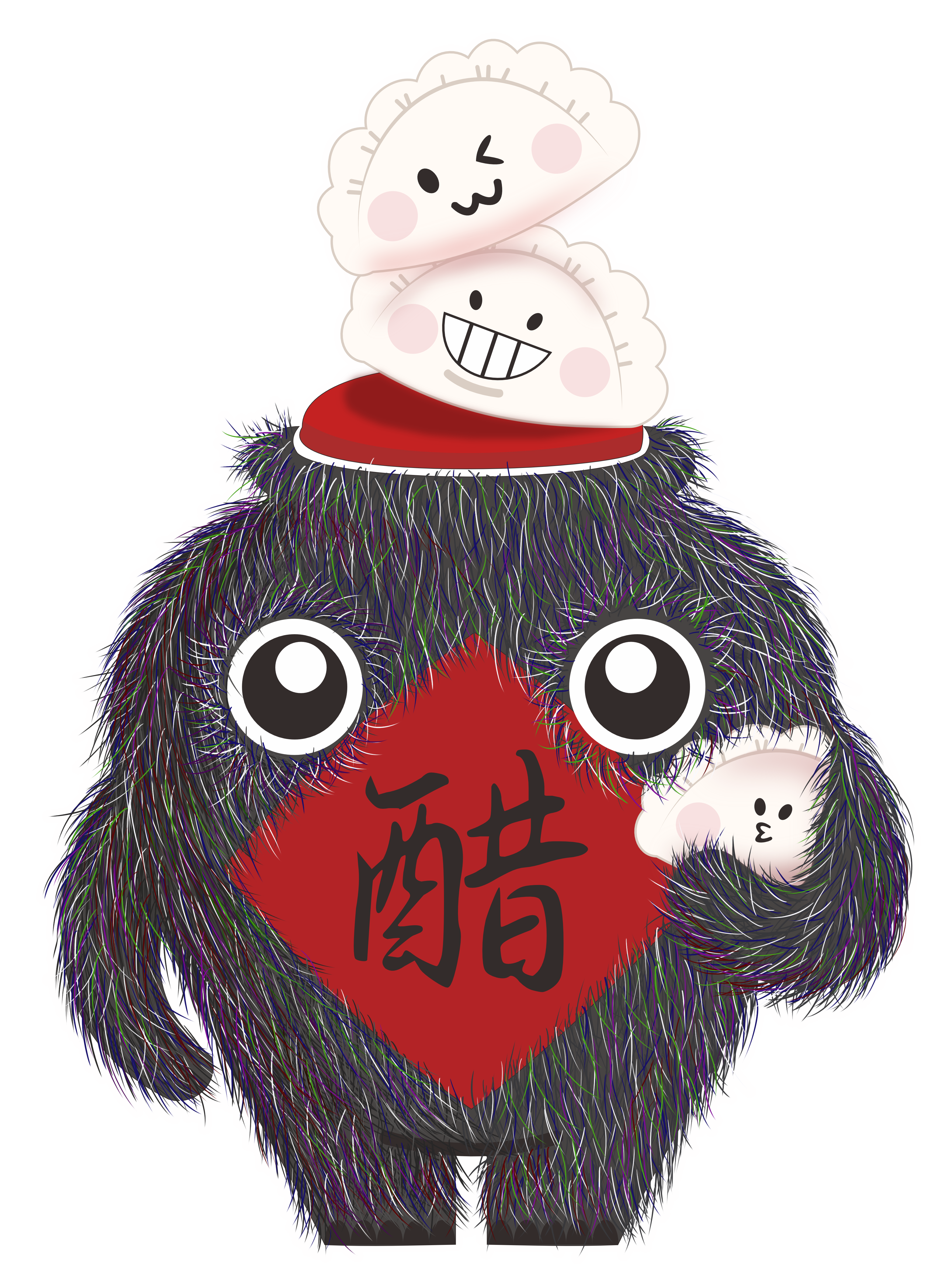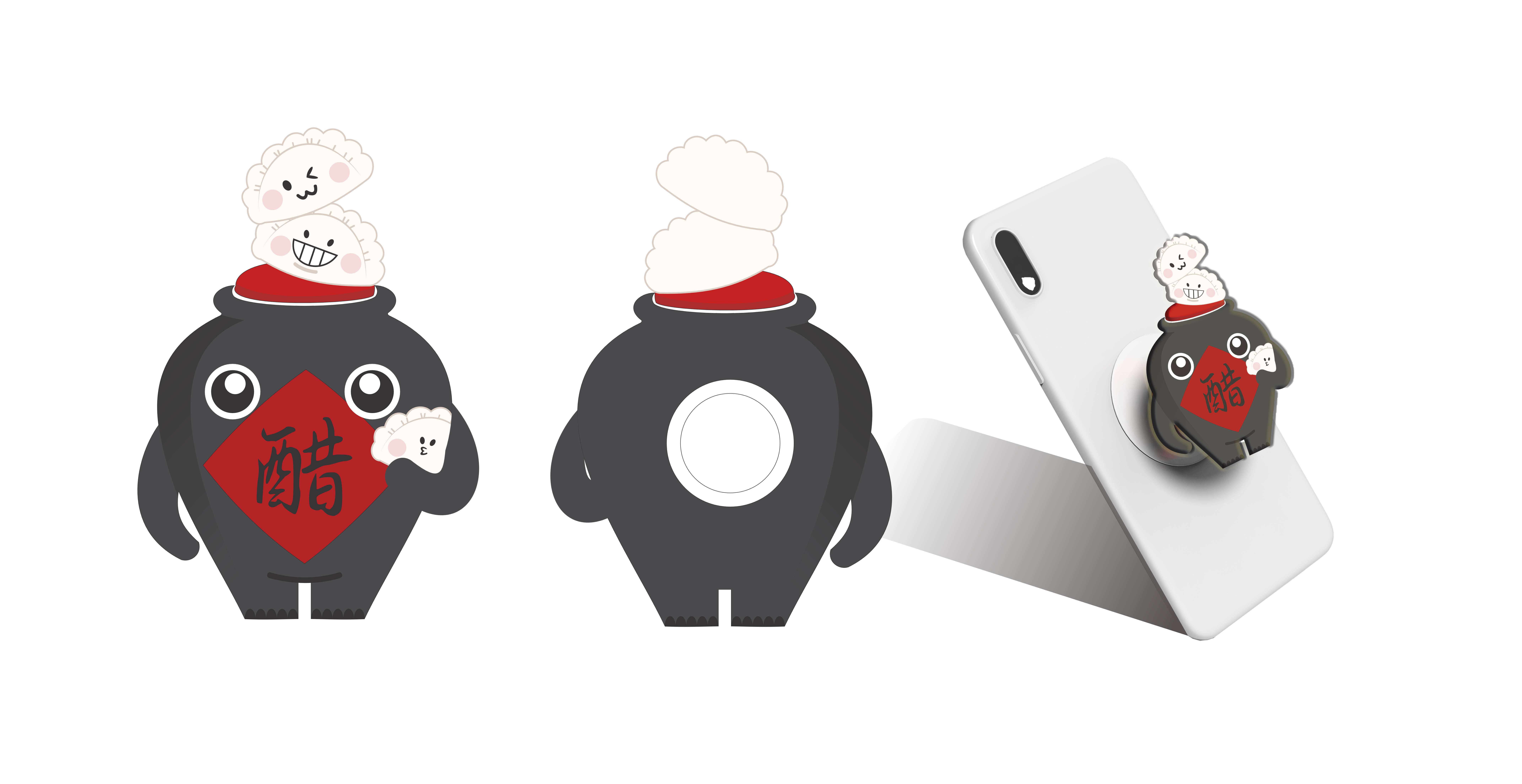“醋干干”是根据山西醋的容器醋缸为原型经过拟人化设计而来配上 饺子的卡通形象搭配,“吃饺子不配醋,滋味少一半”。 公仔形象可以做成毛绒绒的公仔、包挂、手机气囊支架迎合年轻人的需求。