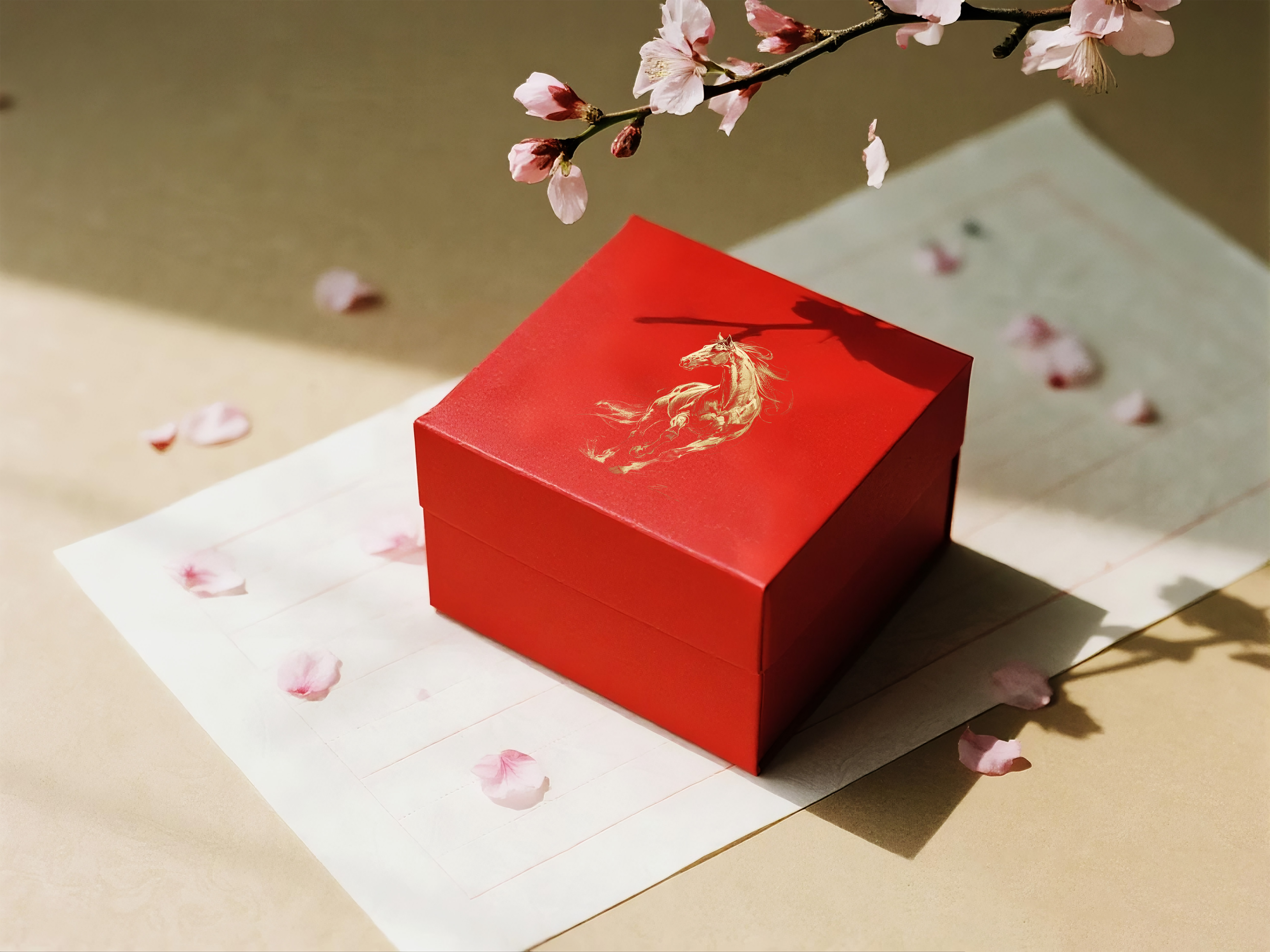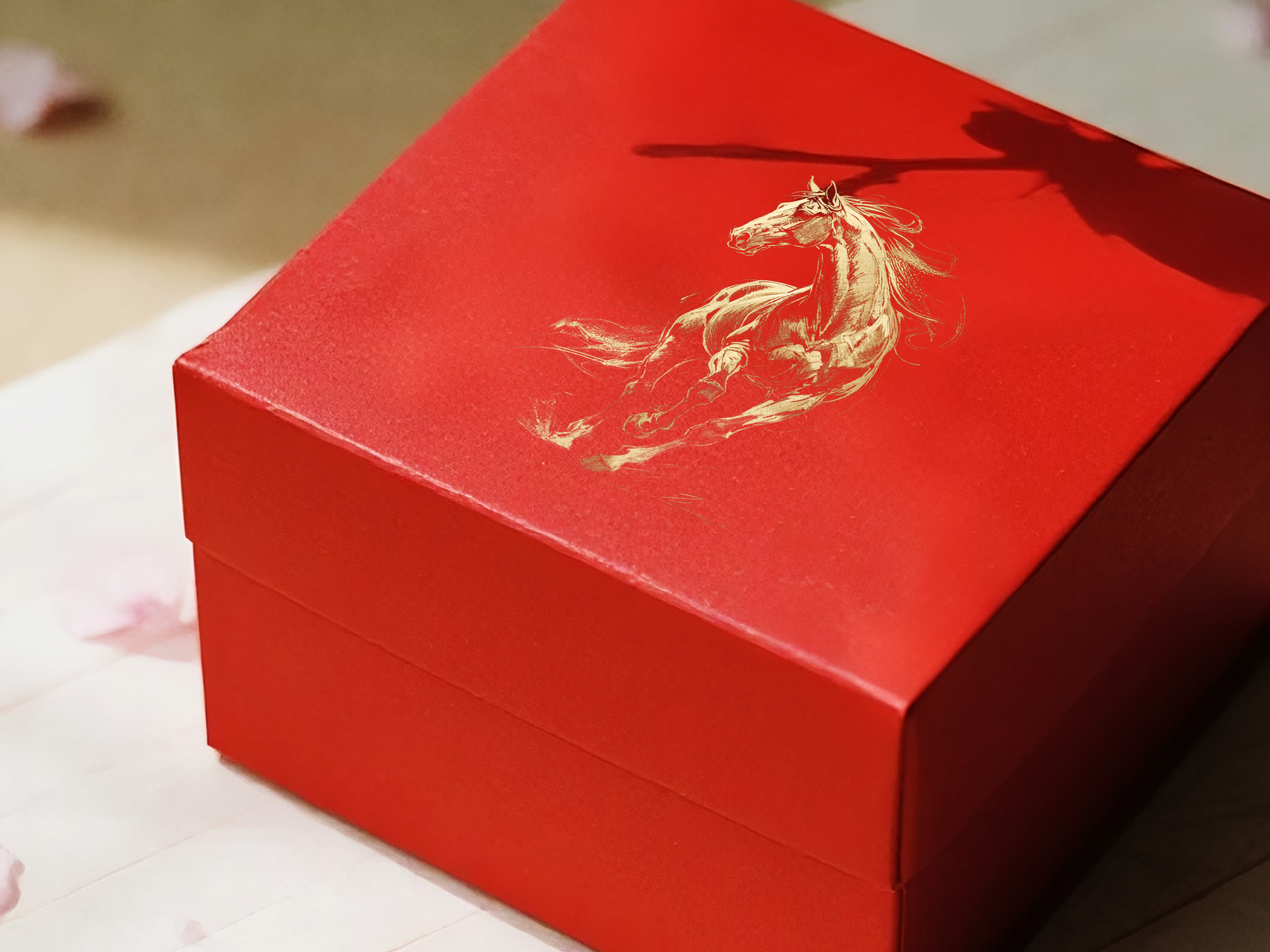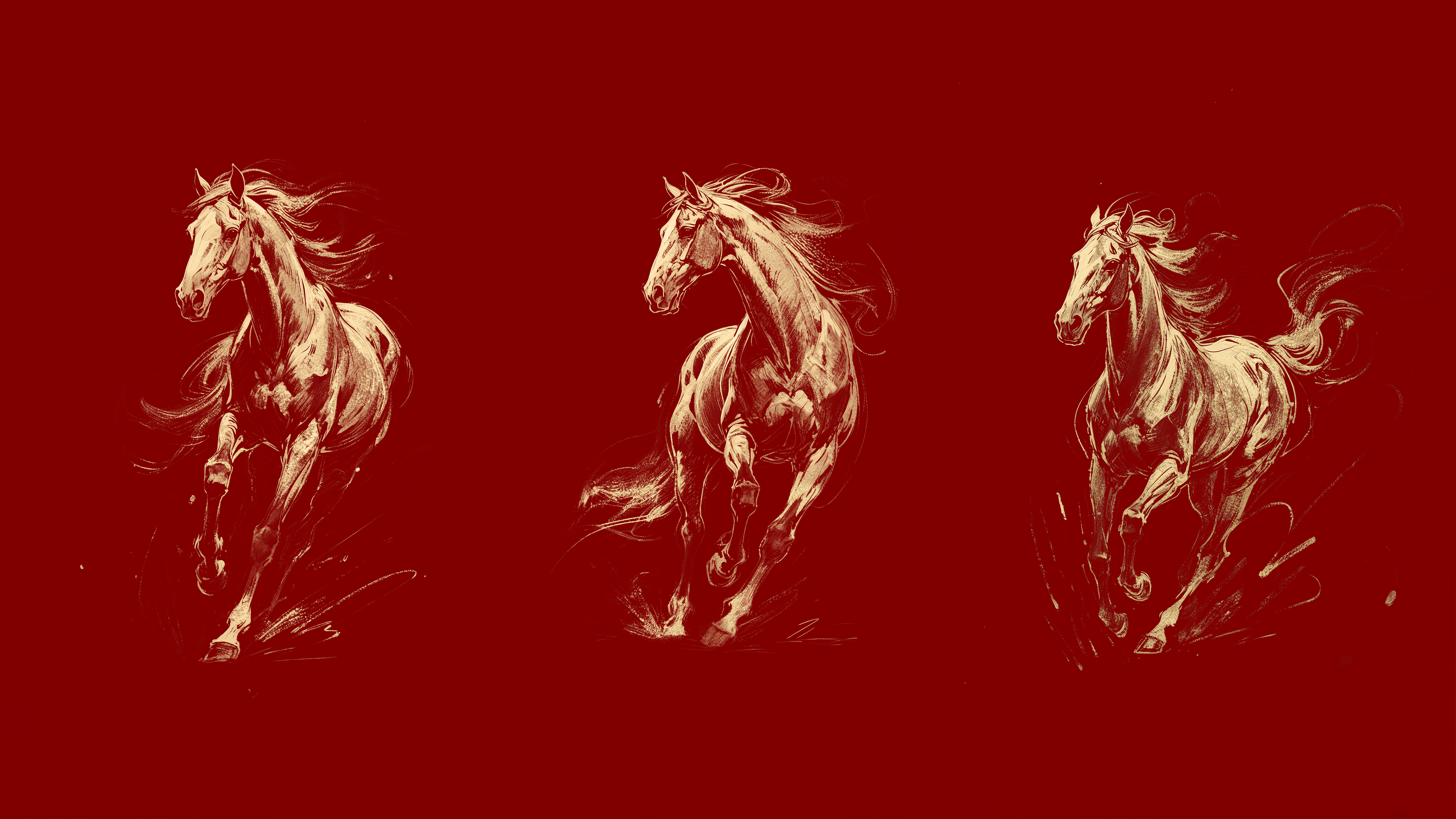 不羁的气质掀开了红底的幕布, 金马从光里飞出。 飞扬鬃毛如流云飘拂, 蹄下带起碎金的雾。 它昂首,肌肉如凝固的风, 每一道线条,都是力量的颂扬, 在红与金的交融处, 踏响不羁的征途 , 奏响大国的神韵。