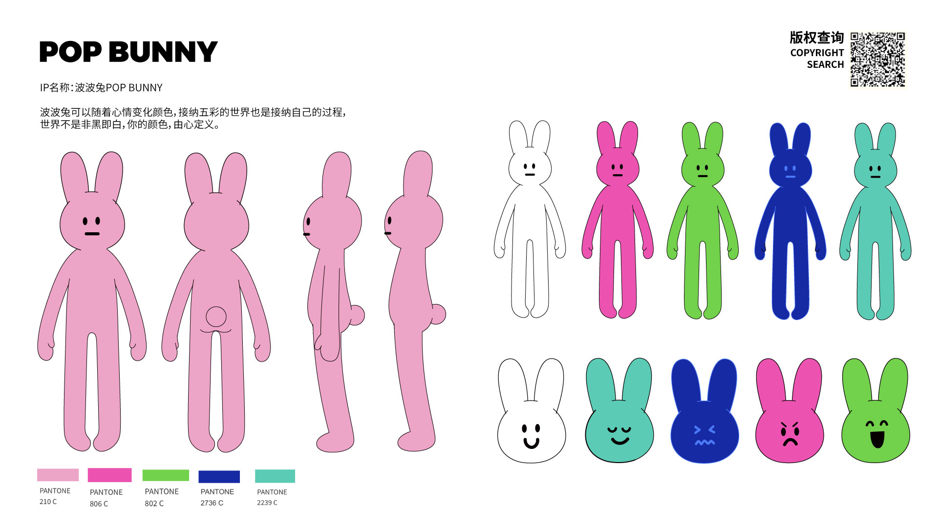 波波兔可以随着心情变化颜色,接纳五彩的世界也是接纳自己的过程, 世界不是非黑即白,你的颜色,由心定义。