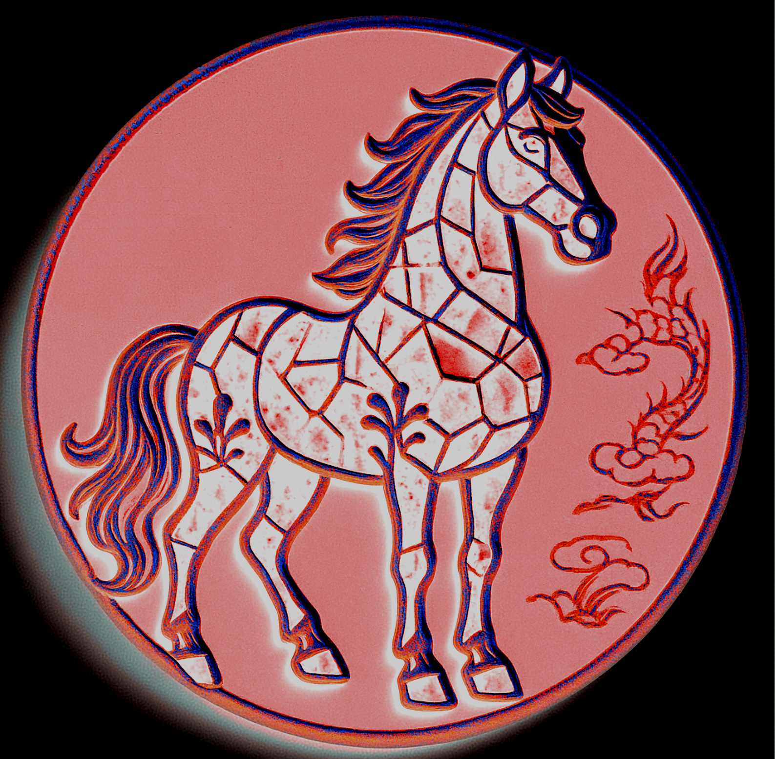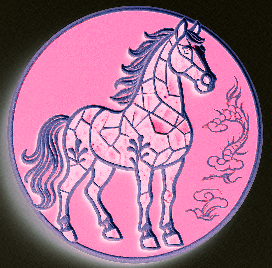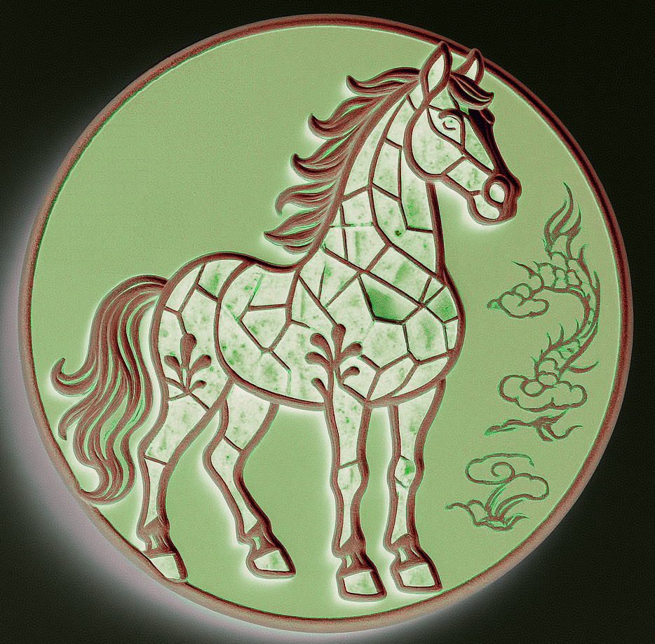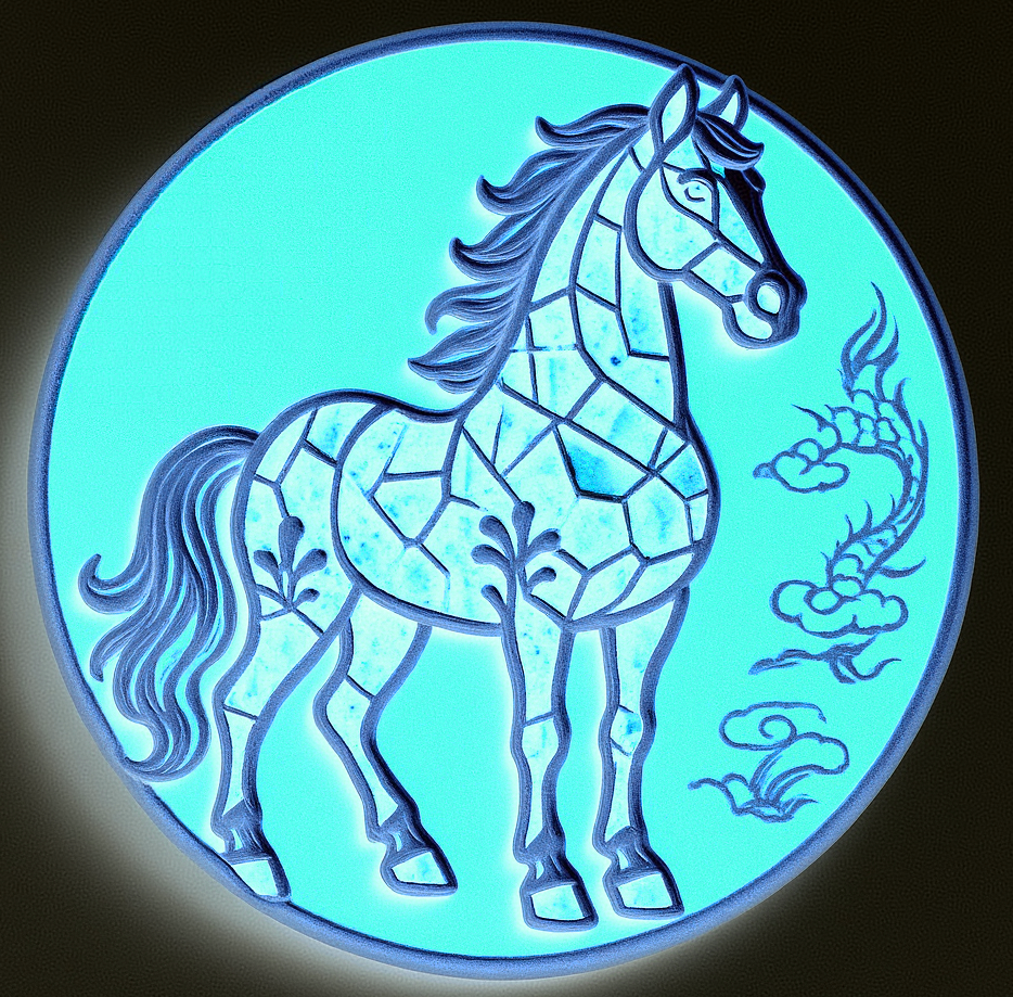 设计理念:传统马赛克图案源自西方,此次设计的马匹身上之所以采用马赛克碎片化拼接形式,除展示中西文化与艺术结合的独特魅力外,也是为了表达~~任何一个成功的人都会具备“细节与整体”的双重思维与素养的重要性,同时,也表现“静思及耐心”的艺术特质和做事方式的必要性;此系列中,还有几款设计是几何图案与中国纹饰相结合,代表了马儿的灵活多样性及传统与现代结合的魅力感…… 整体在色彩方面,设计了多种柔和且温暖的颜色,除视觉上有舒适及疗愈效果外,同时暗指~~世间马儿种类繁多(人类更如此),彼此要相互包容要相互理解,要海纳百川,方能通达、幸福…… 建议加工和销售领域可选择~~整套杯子垫、马年徽章(印章)、冰箱贴(可用石膏彩绘或橡胶材质及薄款磁吸能做书签的材质等)、全套书签、马克杯杯体图案(可多个马儿一起满铺或单个特写等方式)等等