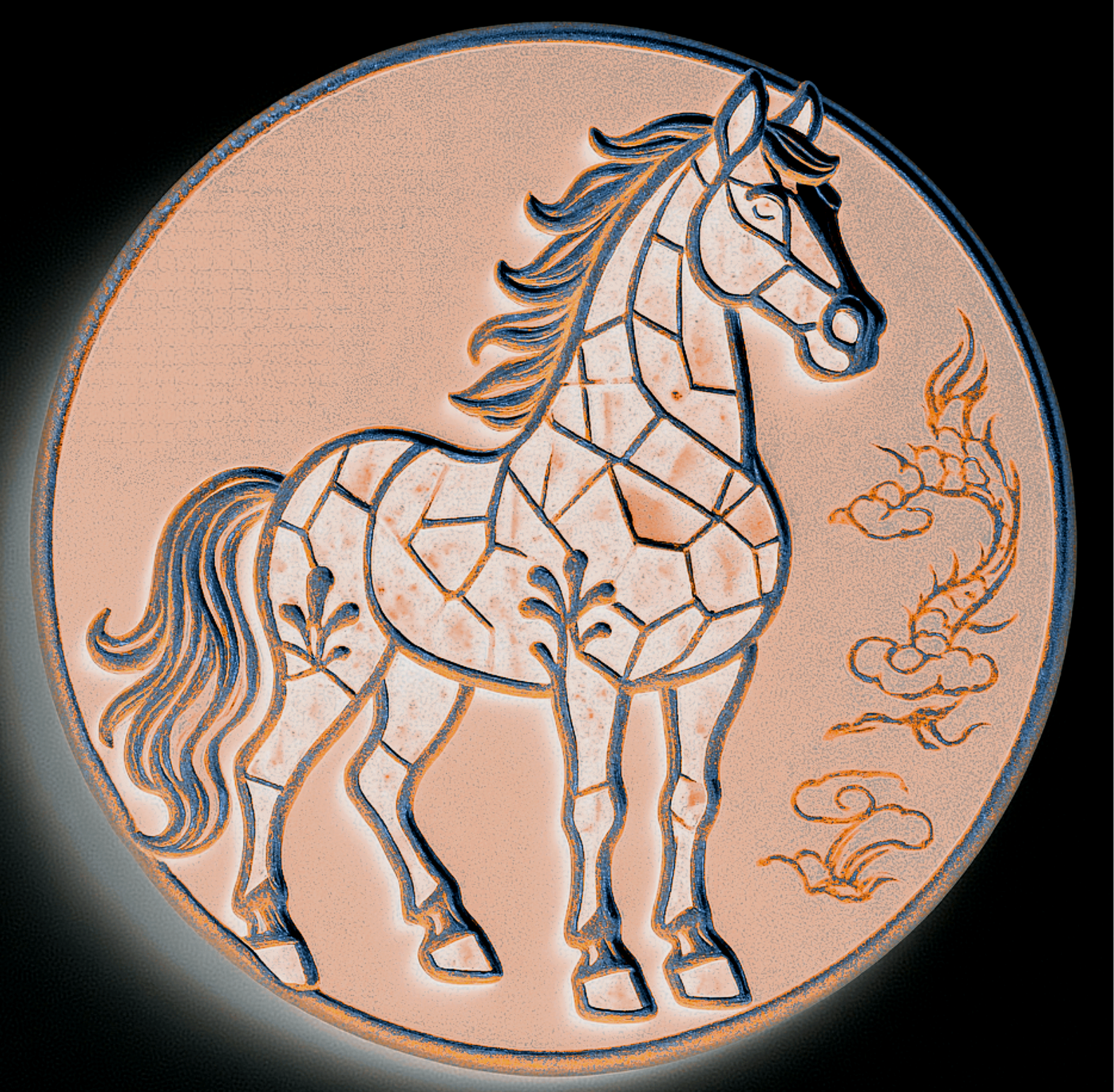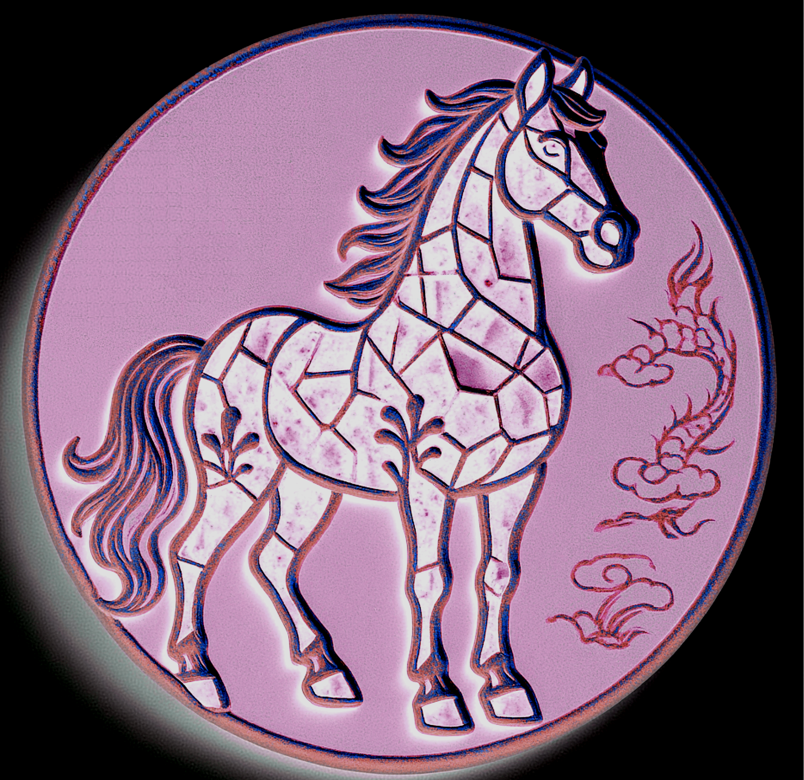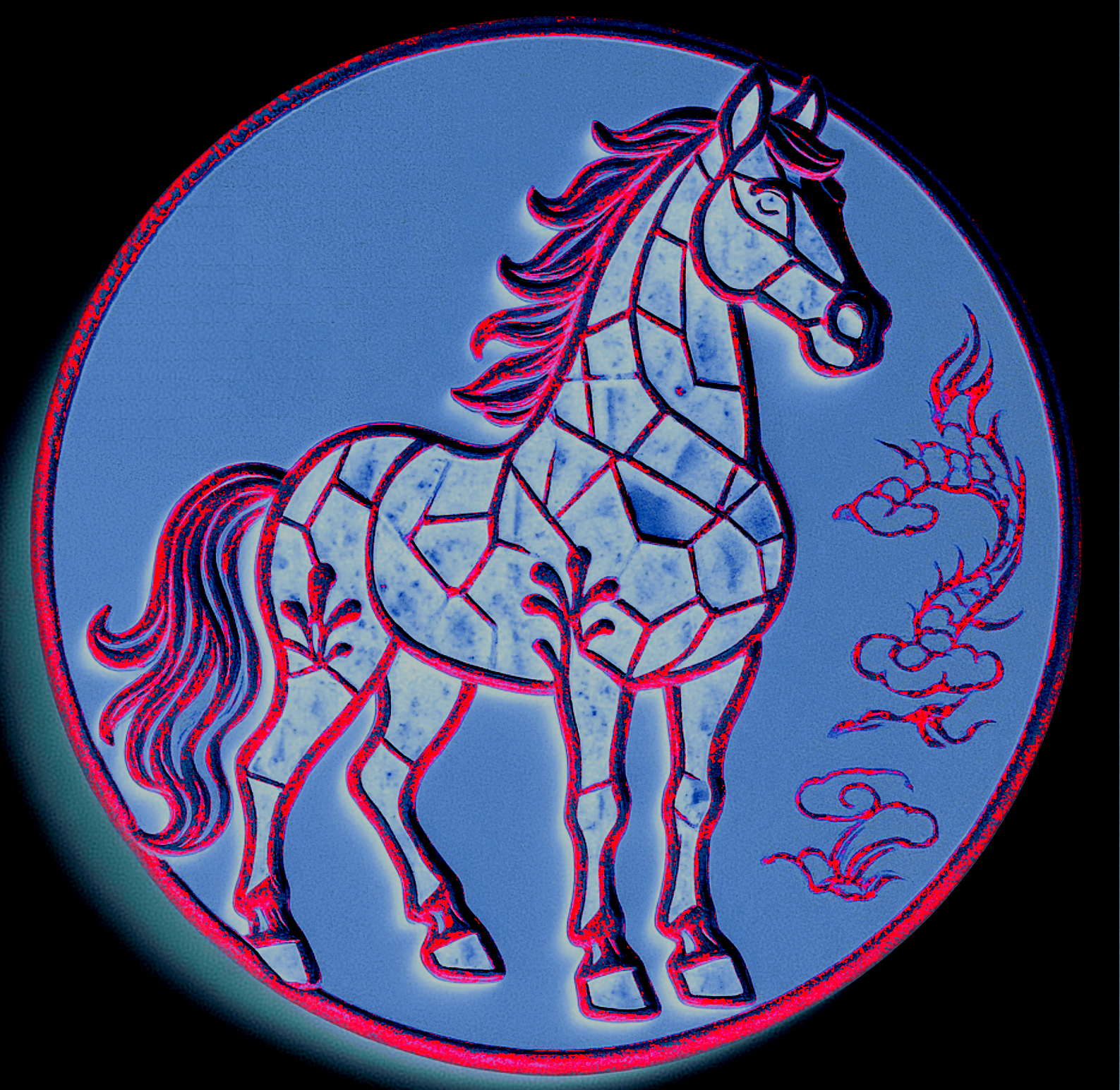 设计理念:传统马赛克图案源自西方,此次设计的马匹身上之所以采用马赛克碎片化拼接形式,除展示中西文化与艺术结合的独特魅力外,也是为了表达~~任何一个成功的人都会具备“细节与整体”的双重思维与素养的重要性,同时,也表现“静思及耐心”的艺术特质和做事方式的必要性;此系列中,还有几款设计是几何图案与中国纹饰相结合,代表了马儿的灵活多样性及传统与现代结合的魅力感…… 整体在色彩方面,设计了多种柔和且温暖的颜色,除视觉上有舒适及疗愈效果外,同时暗指~~世间马儿种类繁多(人类更如此),彼此要相互包容要相互理解,要海纳百川,方能通达、幸福…… 建议加工和销售领域可选择~~整套杯子垫、马年徽章(印章)、冰箱贴(可用石膏彩绘或橡胶材质及薄款磁吸能做书签的材质等)、全套书签、马克杯杯体图案(可多个马儿一起满铺或单个特写等方式)等等