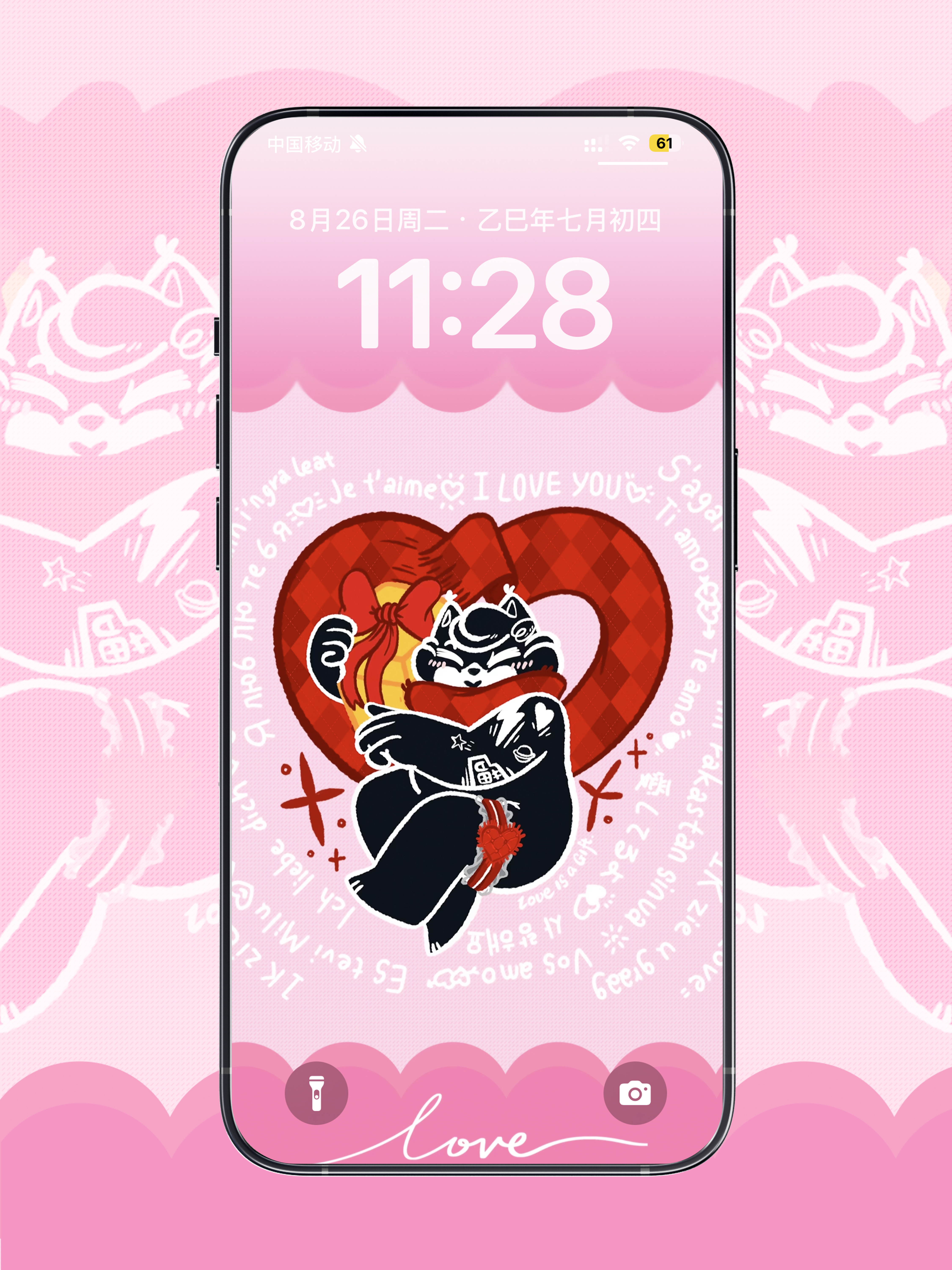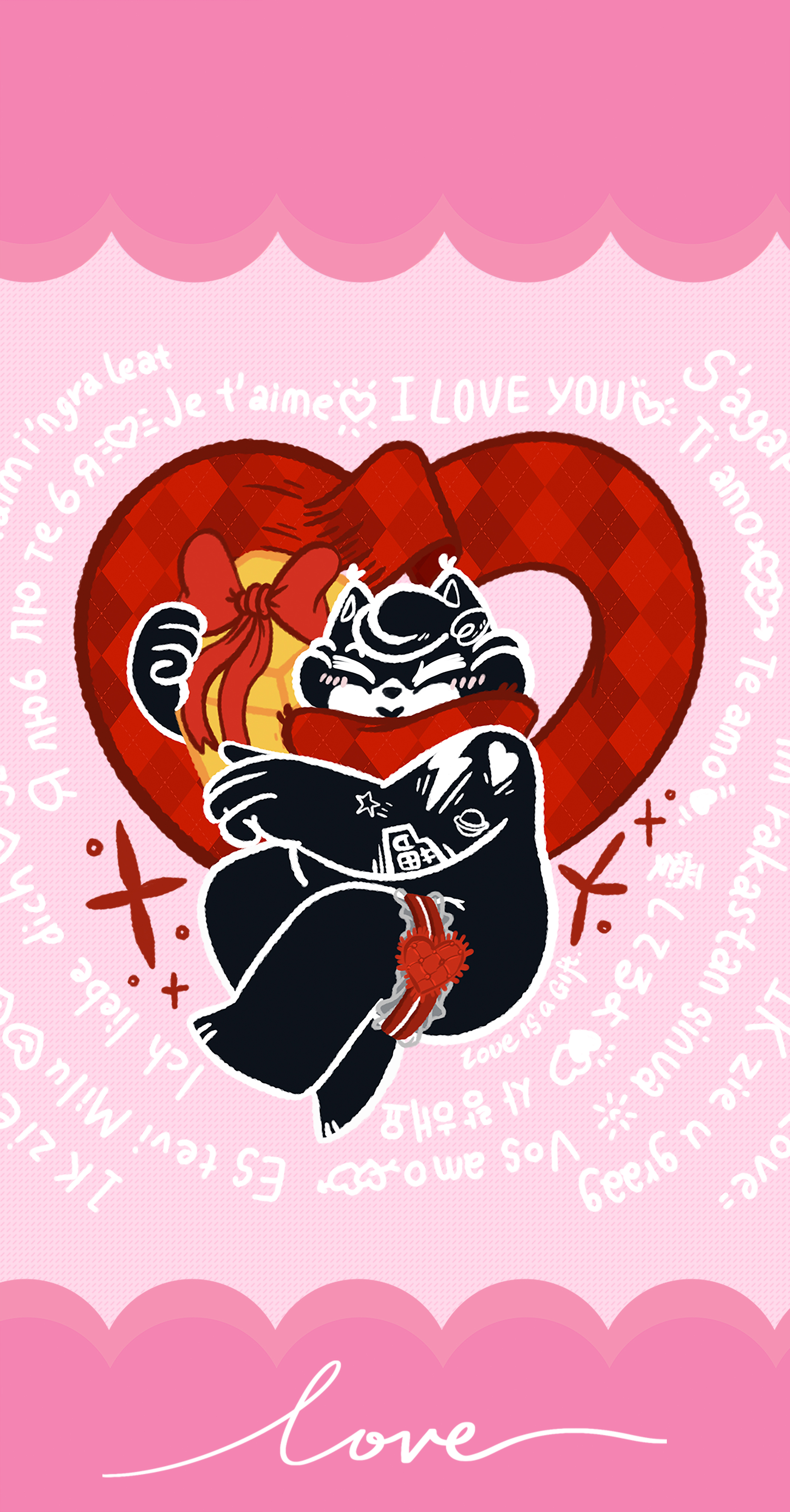 猫梗七夕情人节手机壁纸 猫周边的文字是各种语言的我爱你❤️