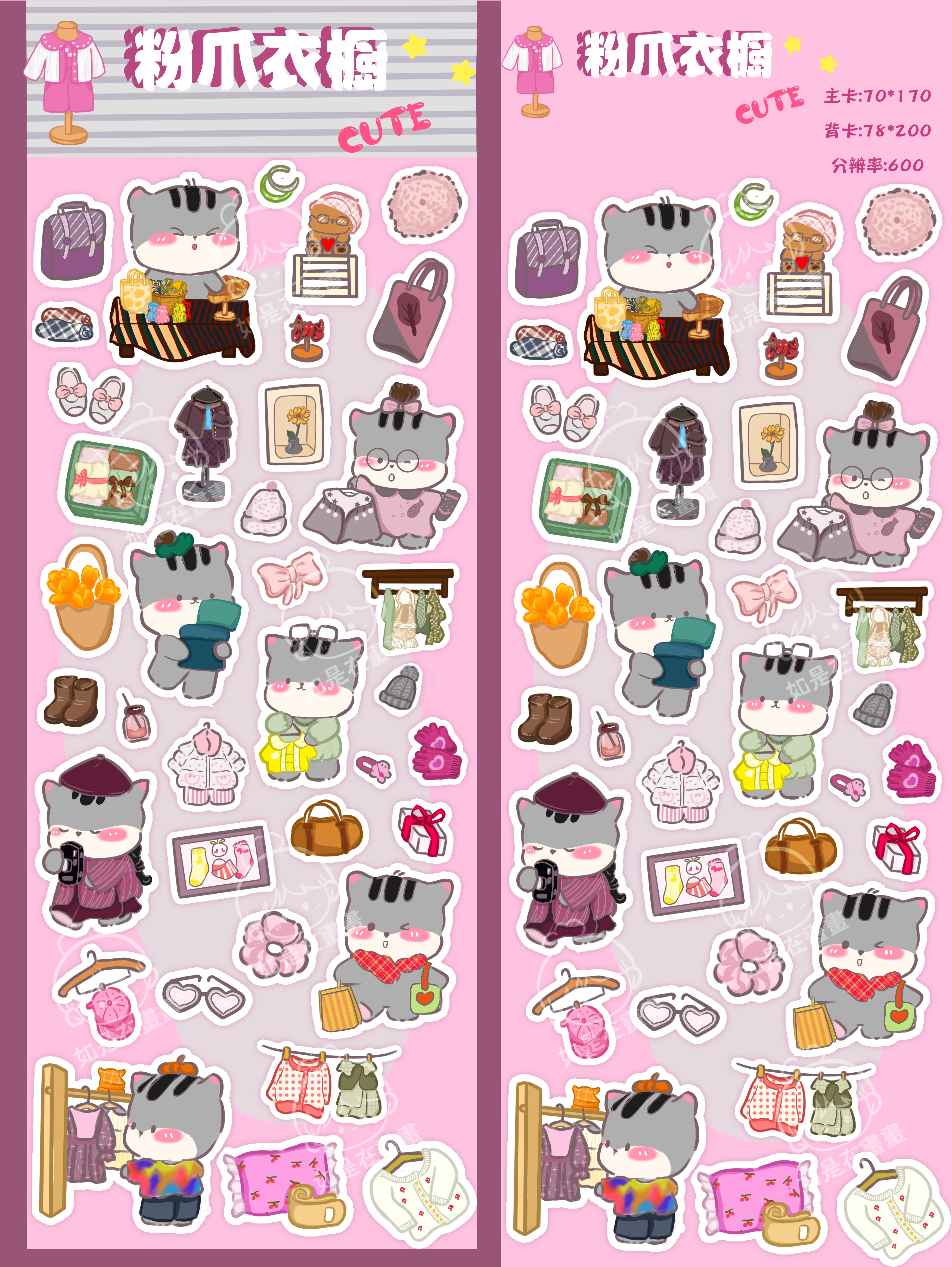 🎀 新品预告|粉灰控和猫奴们请集合!🎀 你见过在服装店打工的卡通小猫吗? 我笔下的它来啦! 主色调是超治愈的𝗣𝗶𝗻𝗸𝗚𝗿𝗲𝘆粉灰色系, 主角是那只对衣服超有品味的𝗖𝗮𝘁卡通小猫。 每一张都是它家服装店里的可爱瞬间✨
