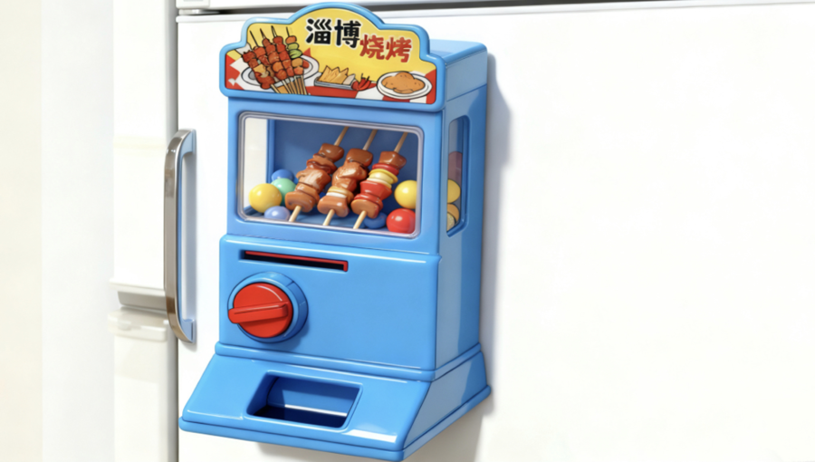 《淄博小饼捏捏冰箱贴创作说明》 这款冰箱贴以淄博特色小饼为原型,将烟火气的美食转化为软萌文创载体: 形象上,保留小饼自然鼓胀的肌理与烤痕,叠加“丑萌笑脸+细腿”的拟人化设计——眯眼笑的表情适配捏捏的软糯质感,细腿增添灵动性,打破传统美食文创的刻板印象,让“小吃”变身为有情绪的可爱玩伴。 外观细节,还原小饼不规则的焦褐斑点,以哑光奶黄为主色调,整体呈现软萌感。 材质选用,采用慢回弹PU发泡材料,兼具捏压解压的互动性与冰箱贴的实用性,轻软质感呼应“小饼刚出炉的暄软”记忆点,让触觉体验与美食联想形成联动。 创作特色,以“美食拟人+解压玩具+地域文创”三重属性结合,跳出“复刻美食外形”的常规思路,用“丑萌治愈感”消解文创的生硬感,让淄博小饼从餐桌符号变成可陪伴、可把玩的城市文化载体,适配年轻群体的“软萌消费”偏好,也让地域特色以更轻盈的方式传播。