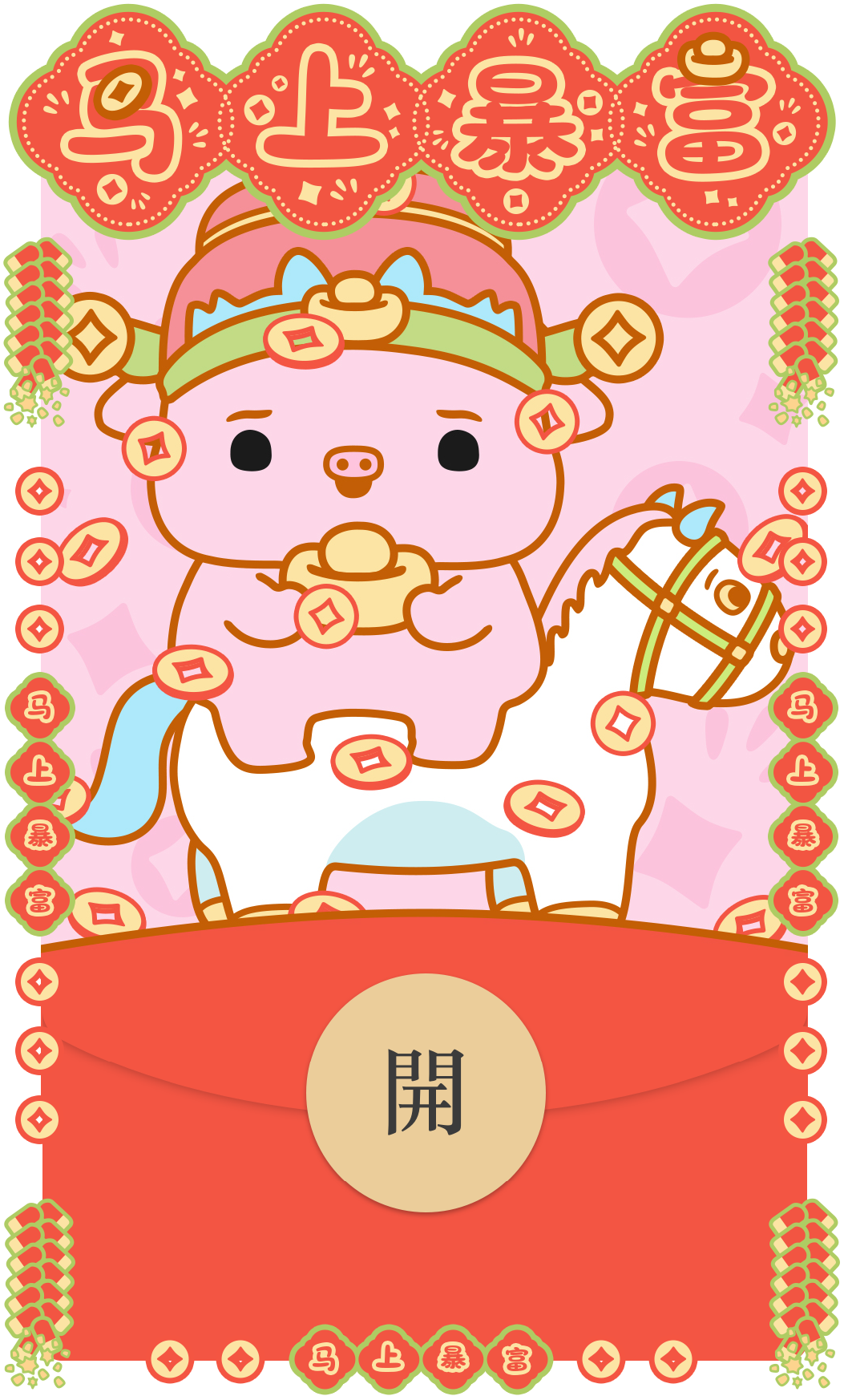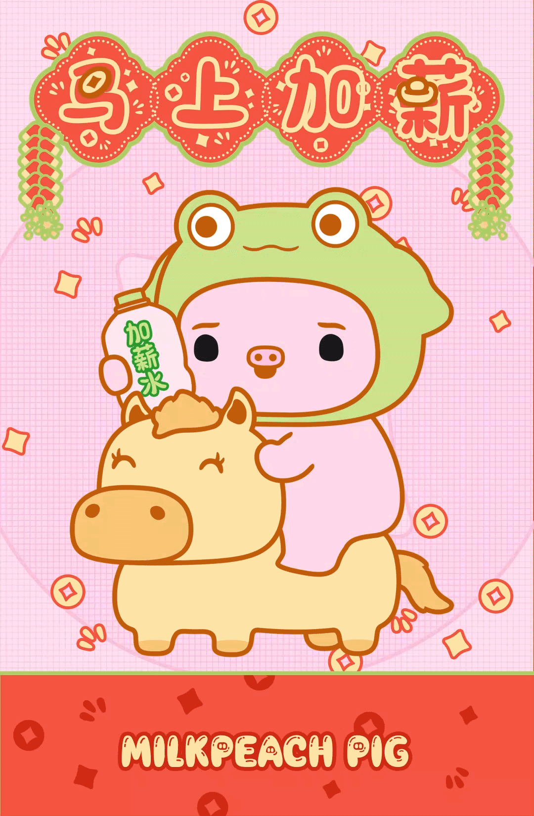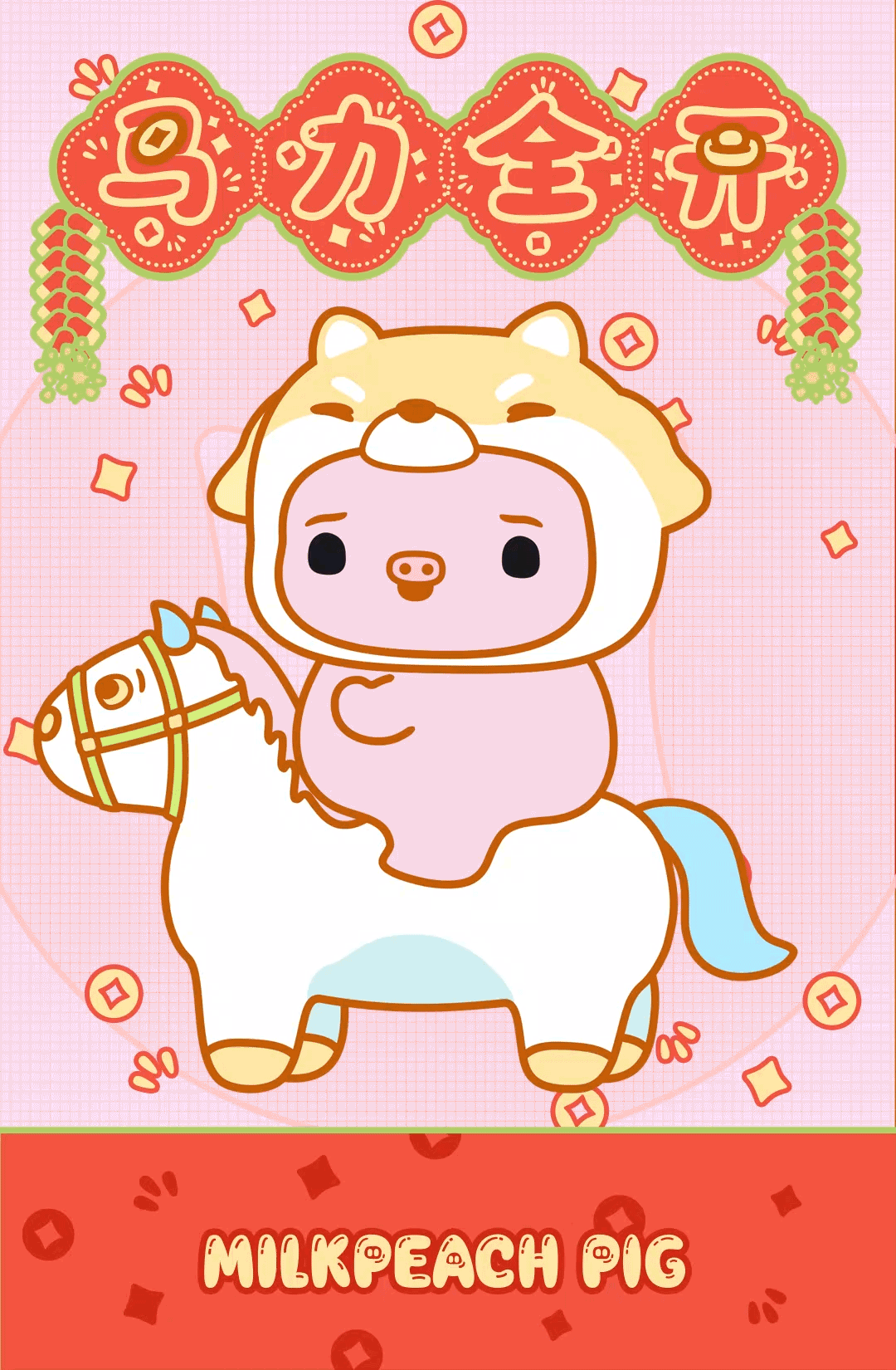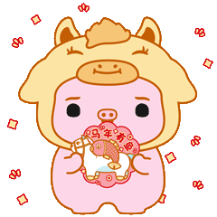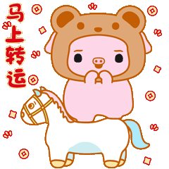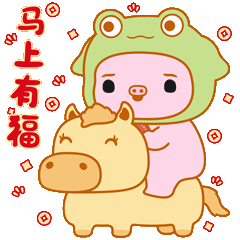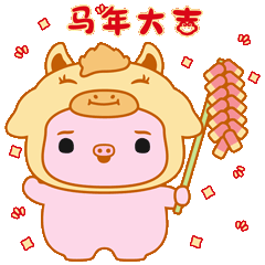 小猪奶桃提前祝:马年大吉、马上有钱、马上转运、马上加薪、马力全开、马年有鱼!