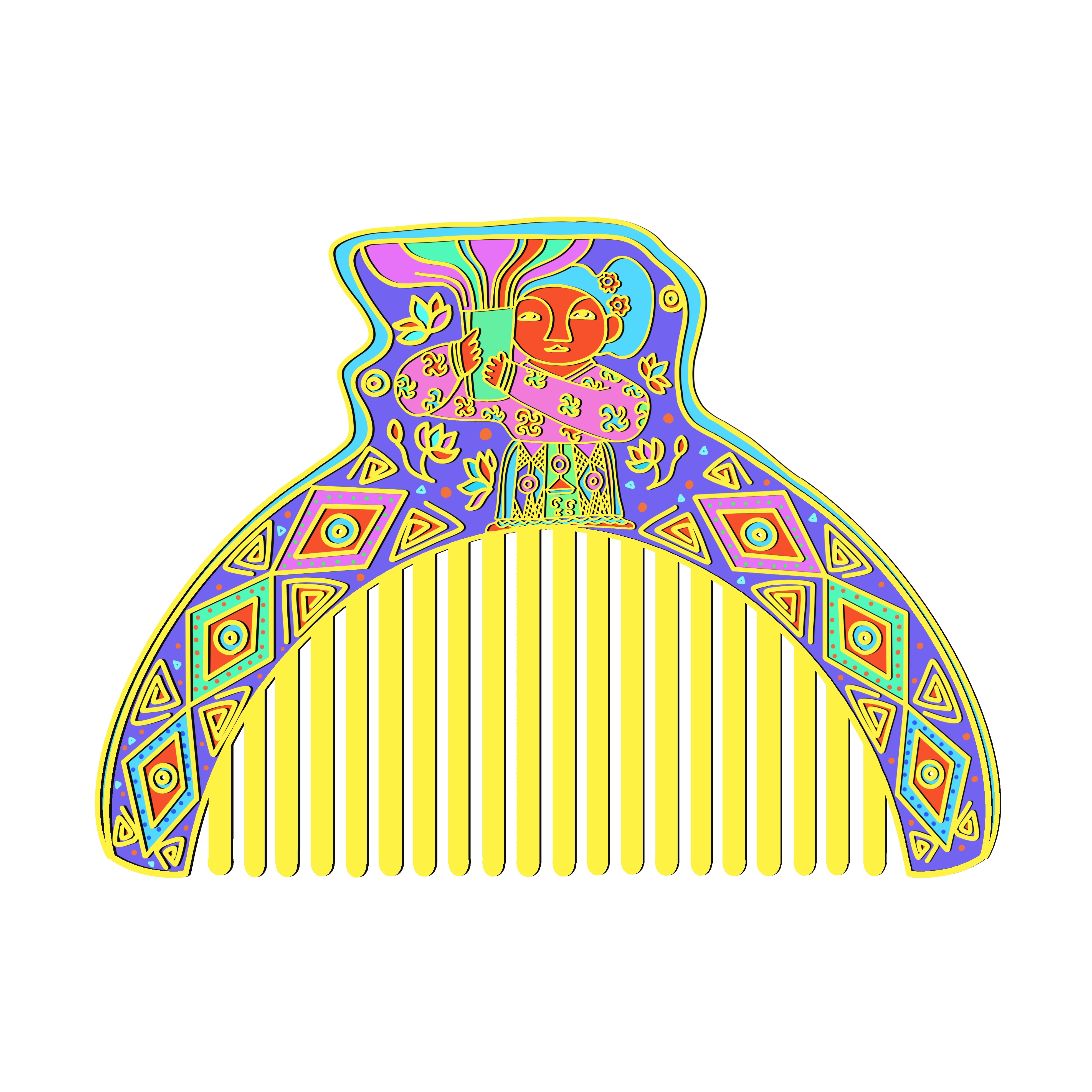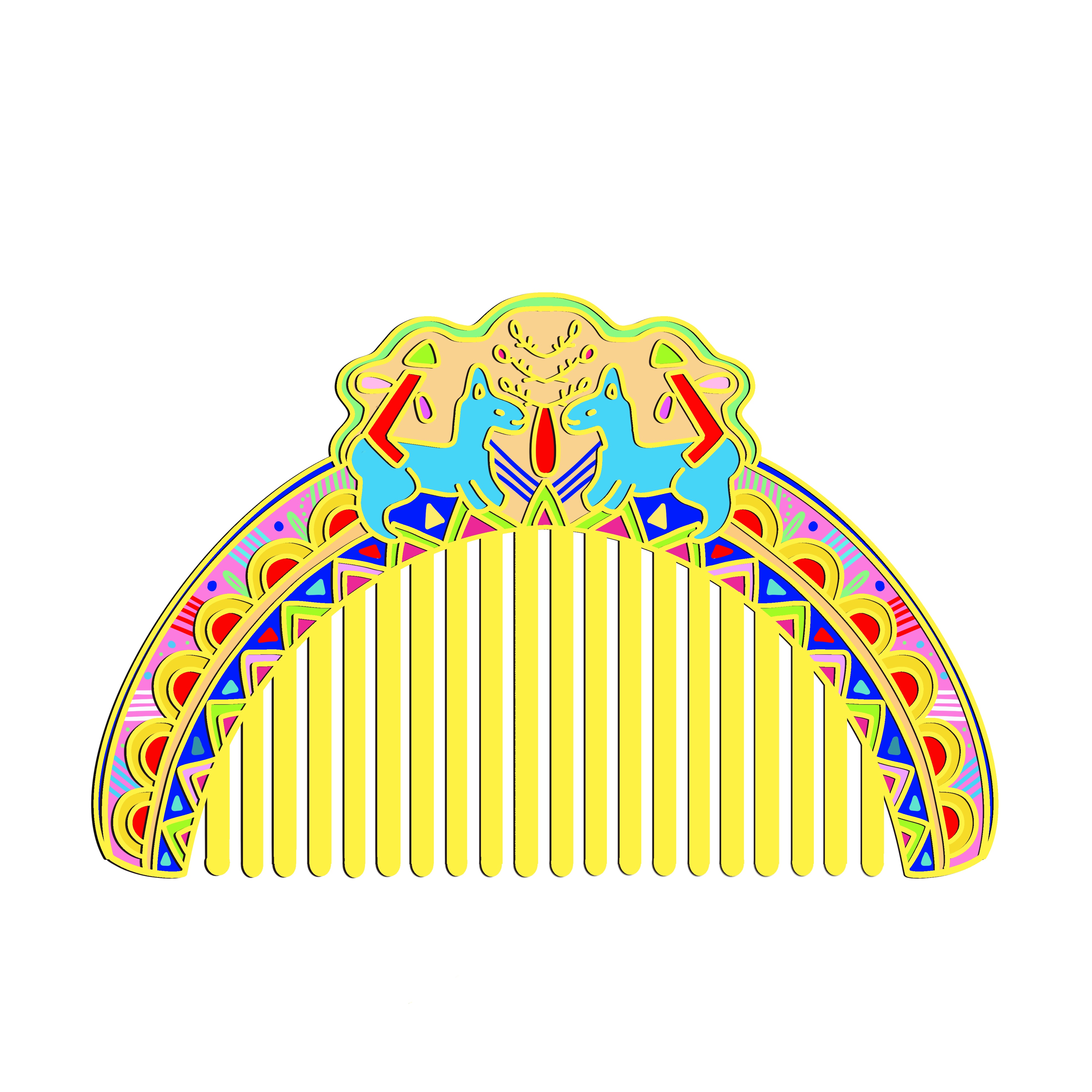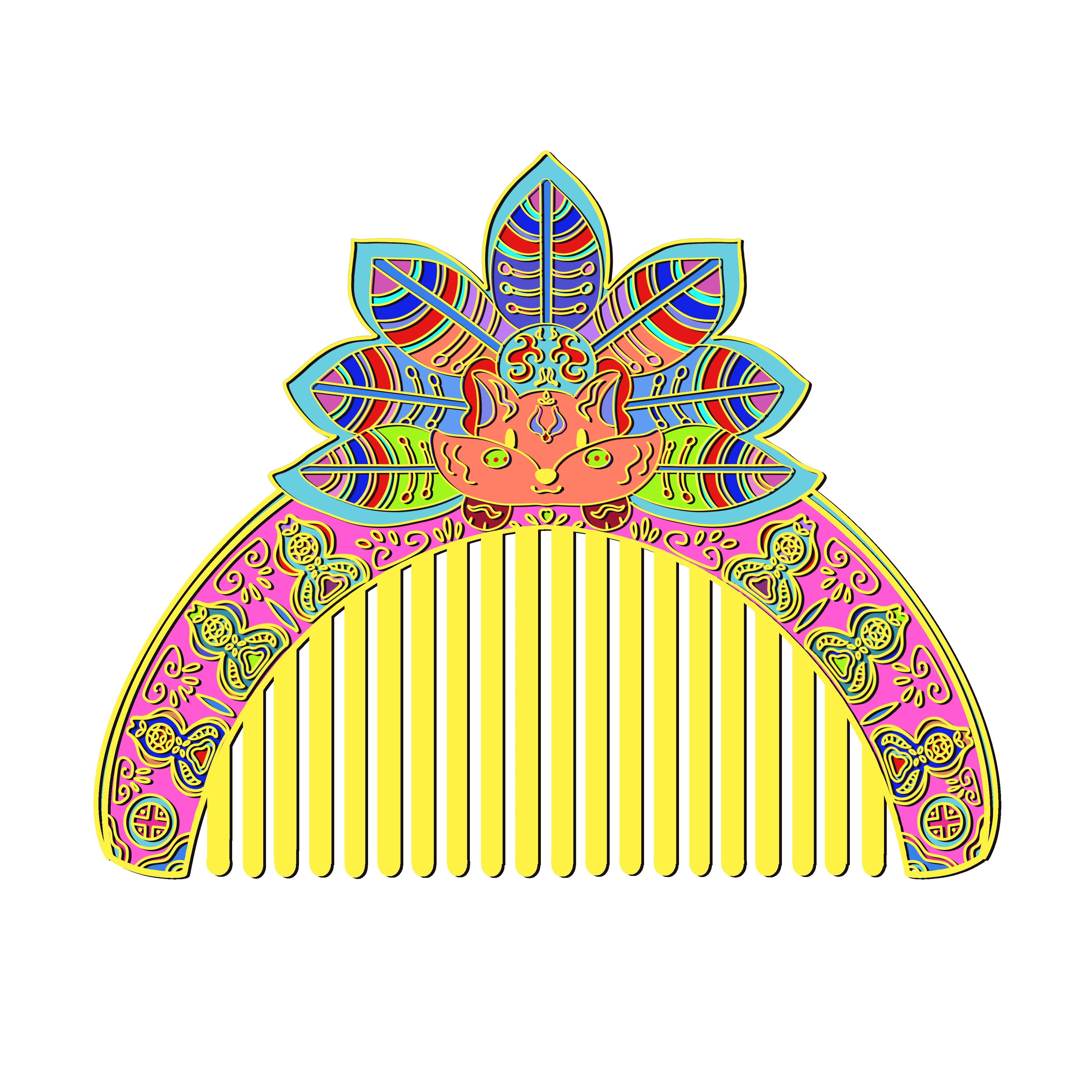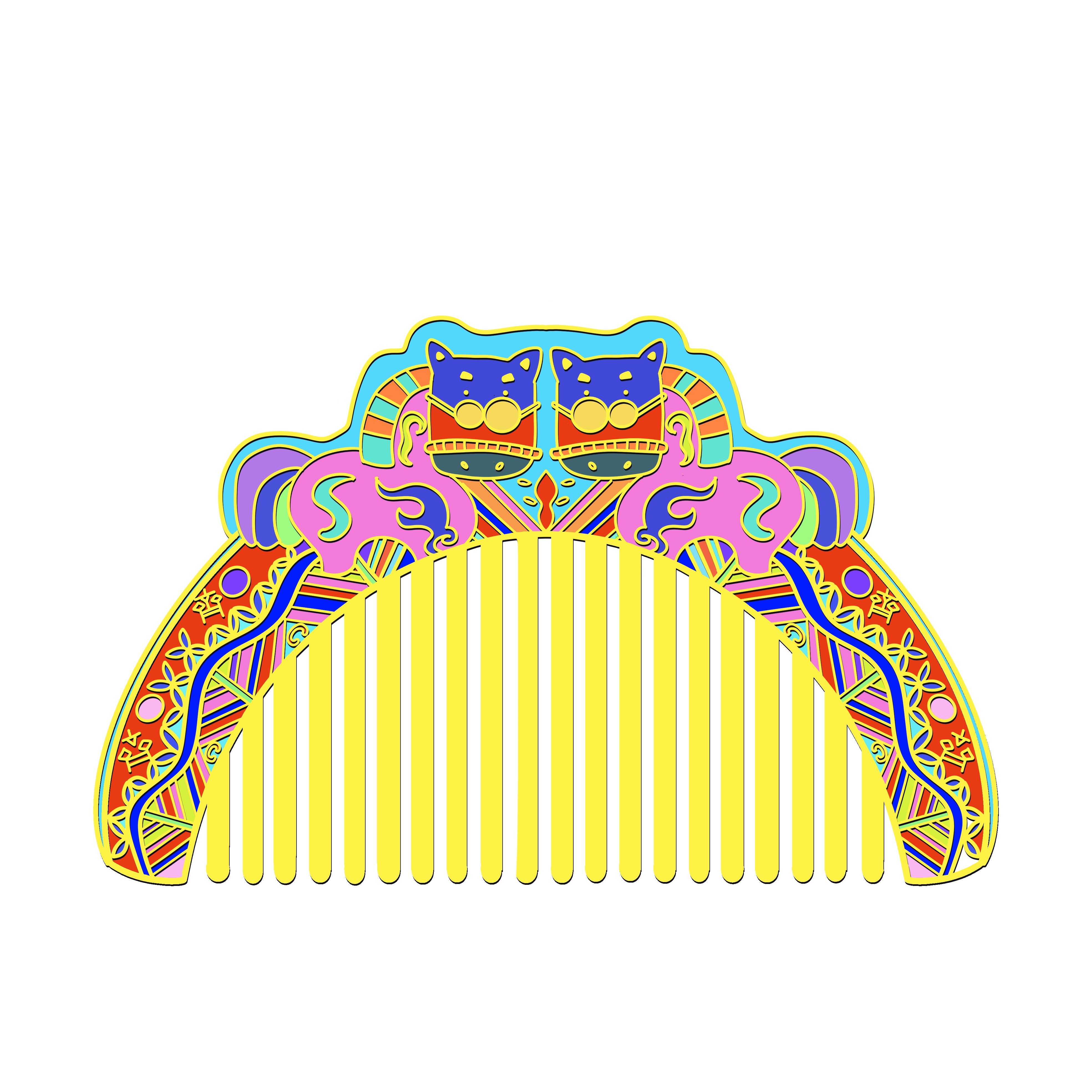 《齐风霓梳——淄博瓦当多巴胺文创梳创作灵感》 【灵感溯源】 从临淄故城遗址出土的汉代卷云纹瓦当中提取回形勾连纹样,将屋檐守护者凝固千年的祥瑞图腾解构成流动的曲线。瓦当弧度暗合梳脊曲度,十二道梳齿对应古代栉具"十二月令"的时序寓意,让齐文化基因在日用器物中重生。 【色彩革命】 打破瓦当青灰质感的传统认知,采用多巴胺配色实验室研发的「琉璃色谱」:正午琉璃蓝作基底,珊瑚橘勾勒卷云纹轮廓,紫葡萄色填充饕餮眼纹,薄荷绿点缀乳钉纹,通过撞色叠加形成3D视效。每0.5毫米的渐变色层均由七道珐琅烤漆工艺实现,让战国气象与赛博美学在梳柄上交相辉映。 【纹样转译】 将瓦当四象限构图转化为现代解构主义设计:左上象限的青龙纹抽象为流动发丝,右下白虎纹幻化成防静电梳齿,中央乳钉纹则演变为符合人体工学的按摩圆珠。特别在梳背镌刻齐刀币纹样的镂空握槽,暗藏"梳去烦恼,理顺财富"的当代祈愿。 【情感共振】 当梳齿划过发丝时,珐琅材质内部的光折射系统会激活多巴胺色系粒子,产生随温度变化的虹彩效应。使用者每次梳头都如同推开齐王宫殿的朱漆大门,让两千年前的建筑智慧与当下情绪需求产生量子纠缠,在头皮神经末梢绽放文化多