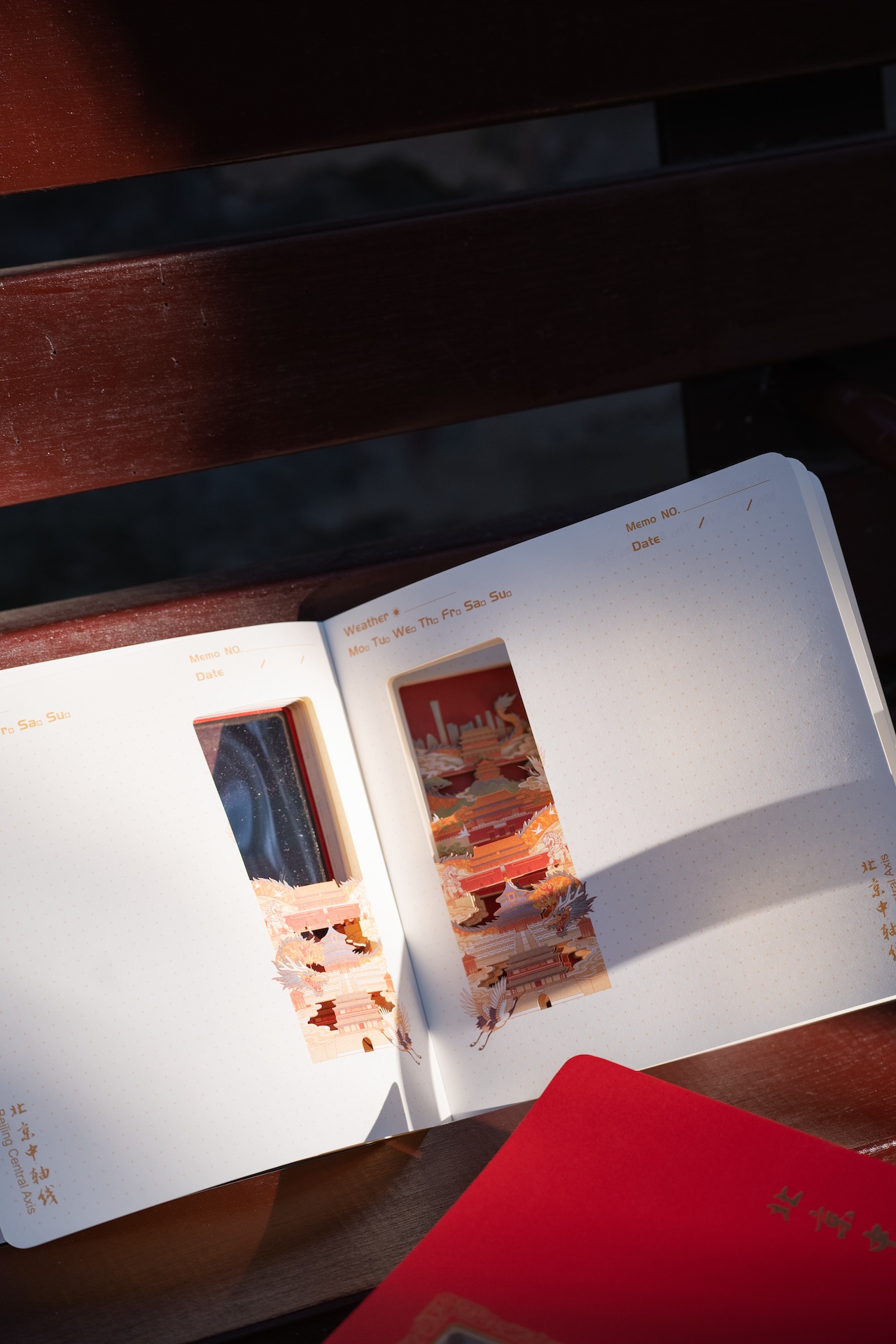 北京中轴线纸雕本,以原创插画为蓝本,精心选取天坛、天安门、景山公园等标志性景点,运用细腻纸雕工艺,将历史与艺术完美融合。从巍峨宫殿到庄严坛庙,层层雕琢,尽显中轴线的雄浑大气与深厚底蕴,翻开每一页,皆如漫步古都,领略京城风华。