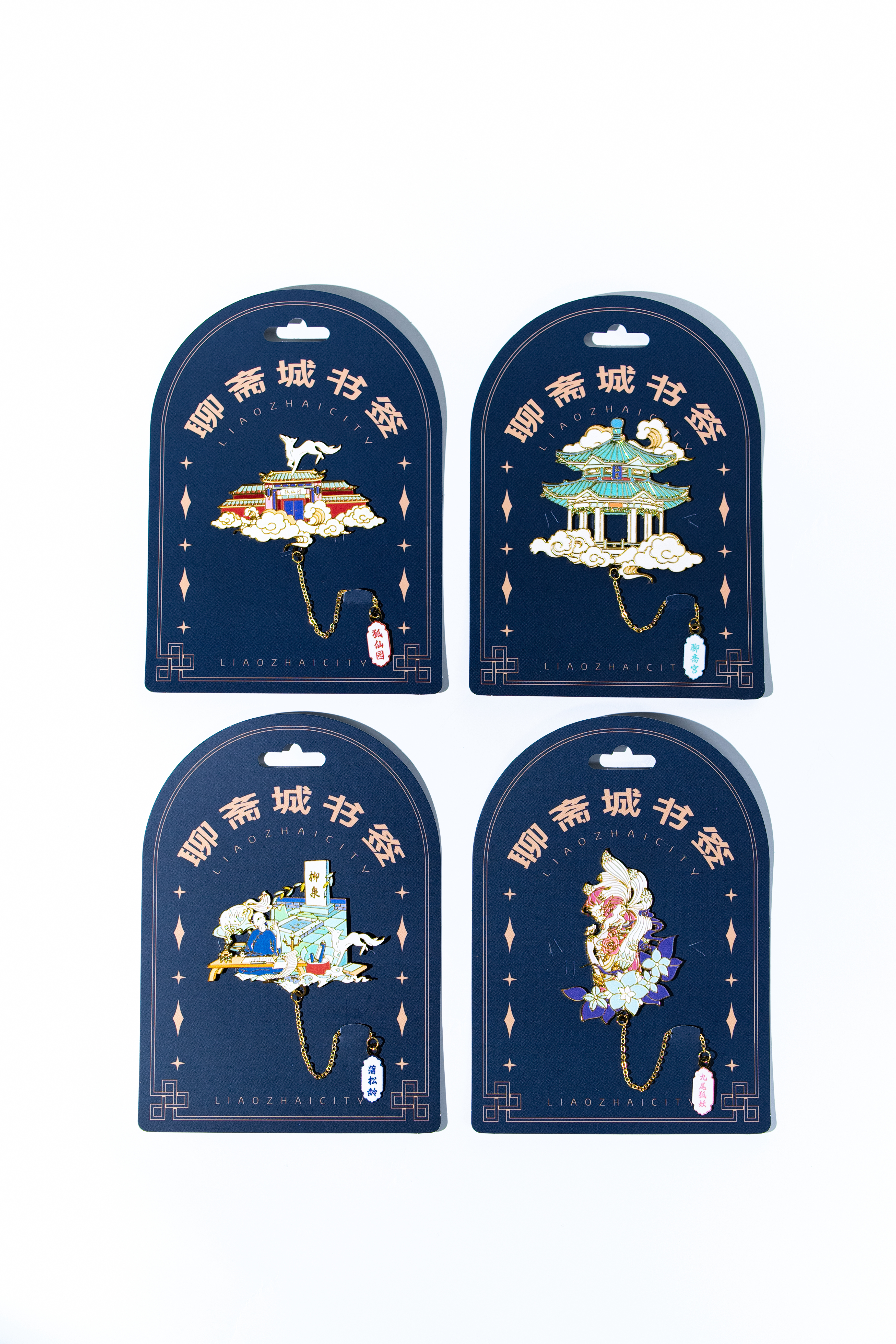 这套聊斋主题书签,以狐仙园、聊斋宫、蒲松龄柳泉、九尾狐妖为灵感。狐仙园书签勾勒出朦胧仙境,聊斋宫书签展现其神秘威严,蒲松龄柳泉书签散发着文人雅韵,九尾狐妖书签尽显灵动狡黠。采用优质材质,配以精美插画,夹于书页,仿若置身聊斋世界,与经典相伴,感受文学魅力。